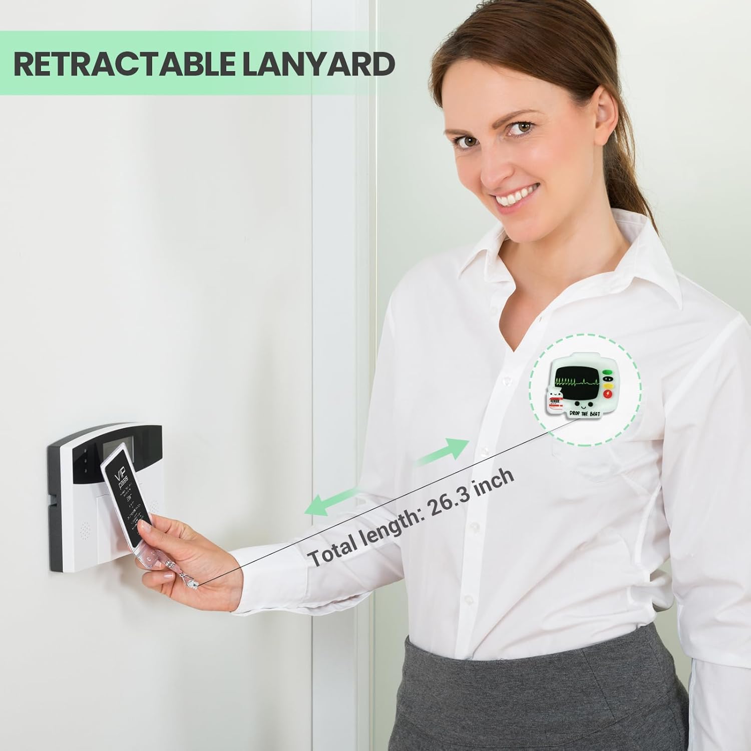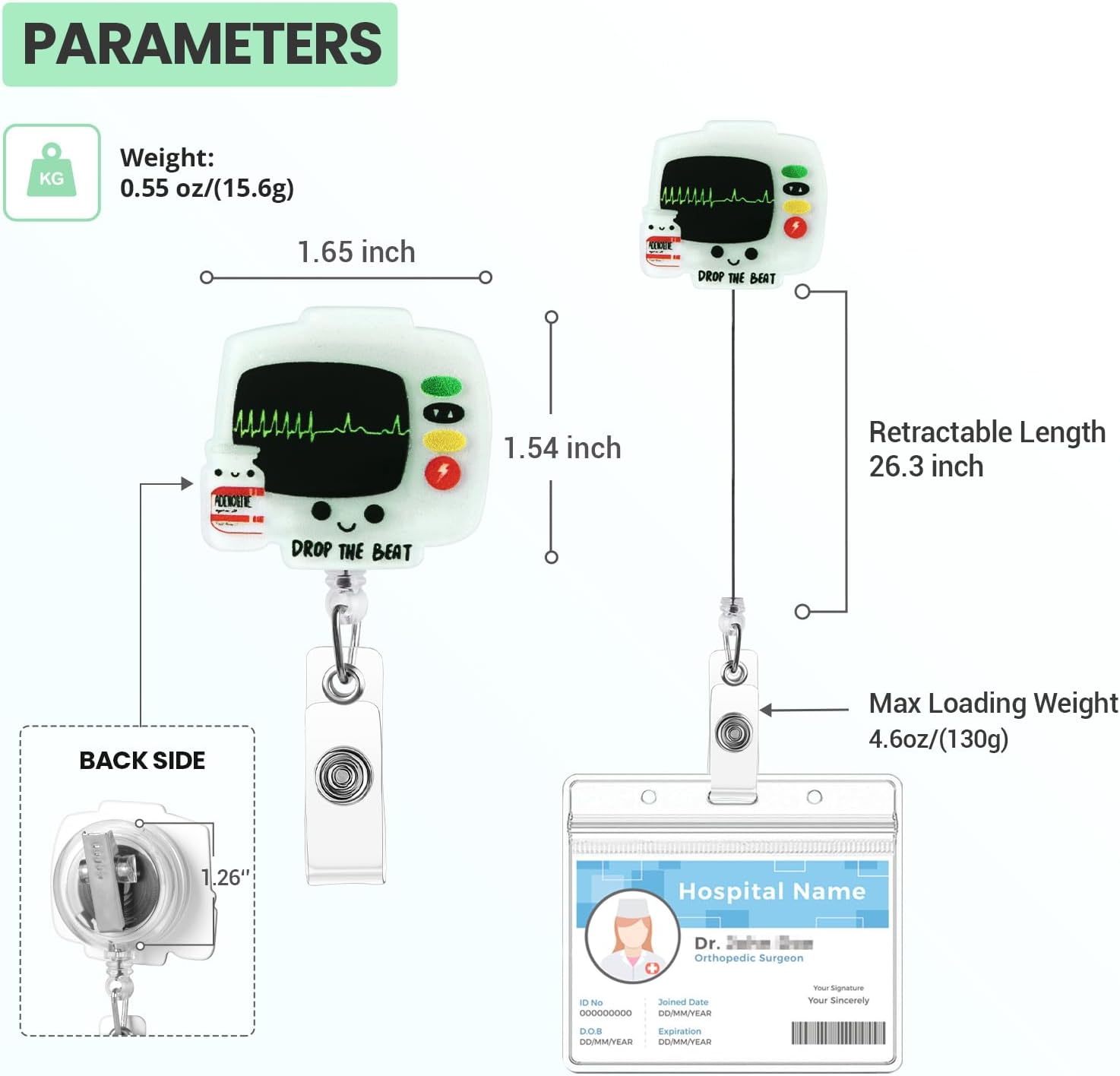 - Drop The Beat ECG DESIGN: This cute badge reel features an funny drop the beat ECG design that adds cuteness and fun to your uniform. A perfect retractable badge holder cute accessory that will bring you joy every time you clip it to your work uniform.