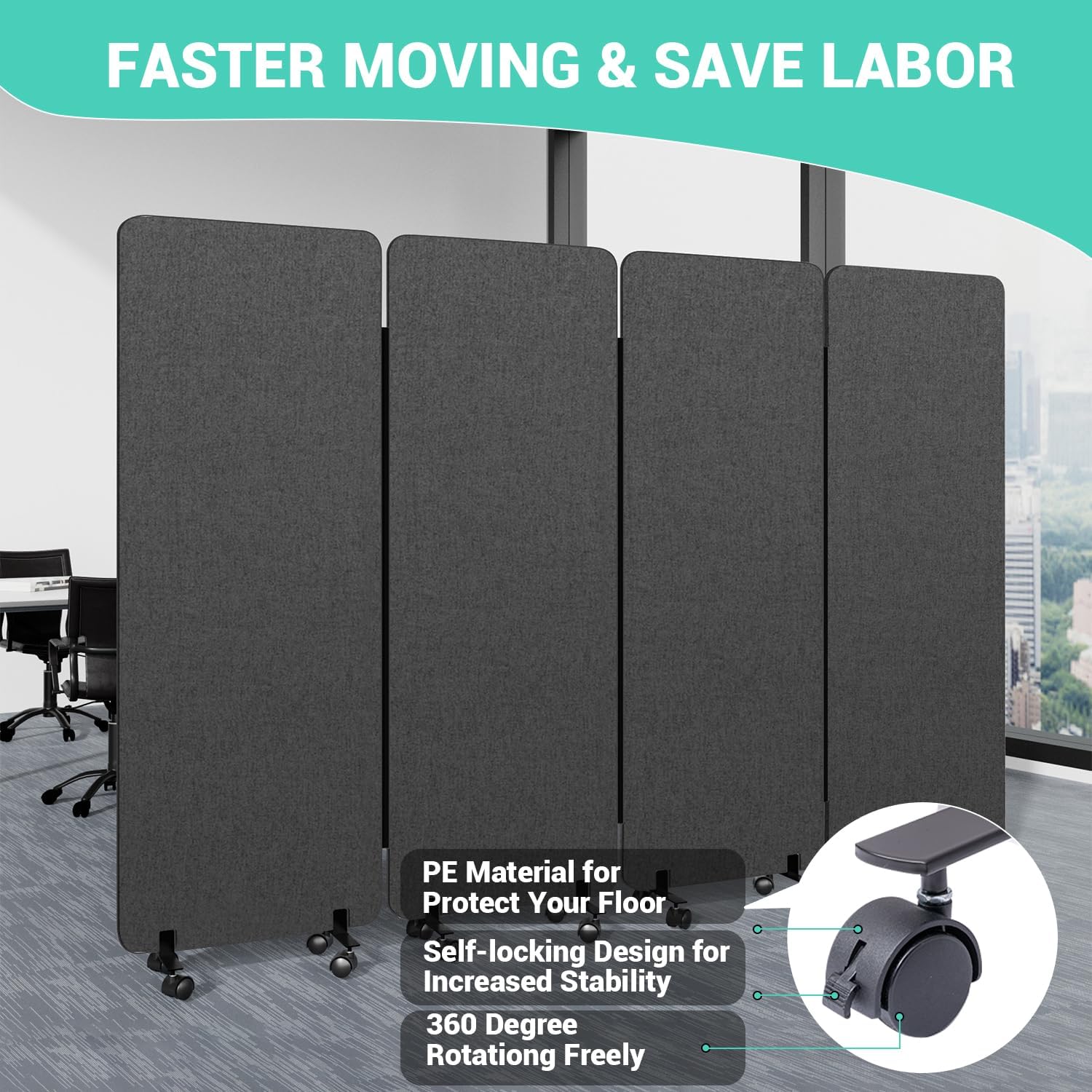- MOVING EASILER & SMOOTHLY: Our sound proof dividers is equipped with self-lockable universal wheels, which help you move around more easily. The brakes on the room divider wheels will improve the stability and prevent slipping. The reinforced metal base is rust-proof and maximises the life of the partition room dividers.