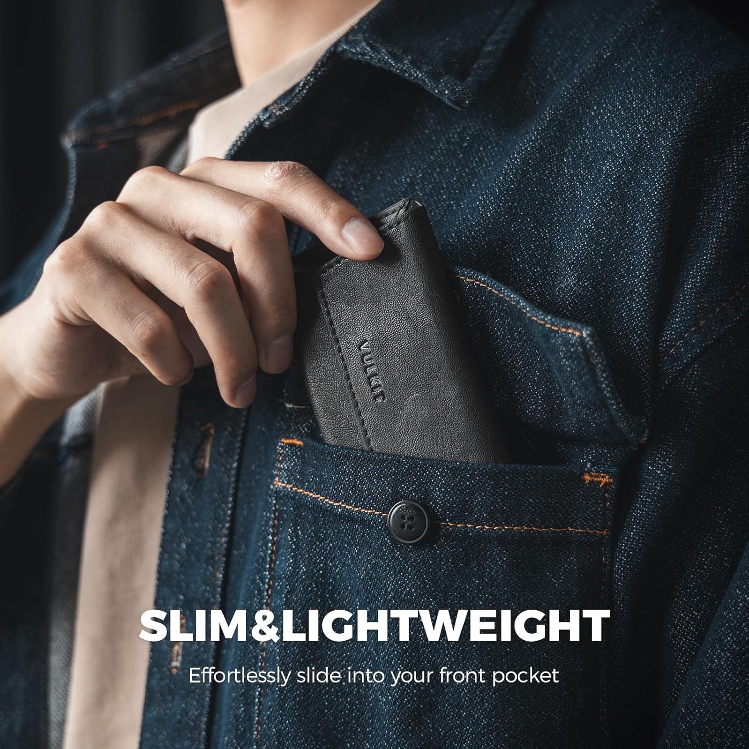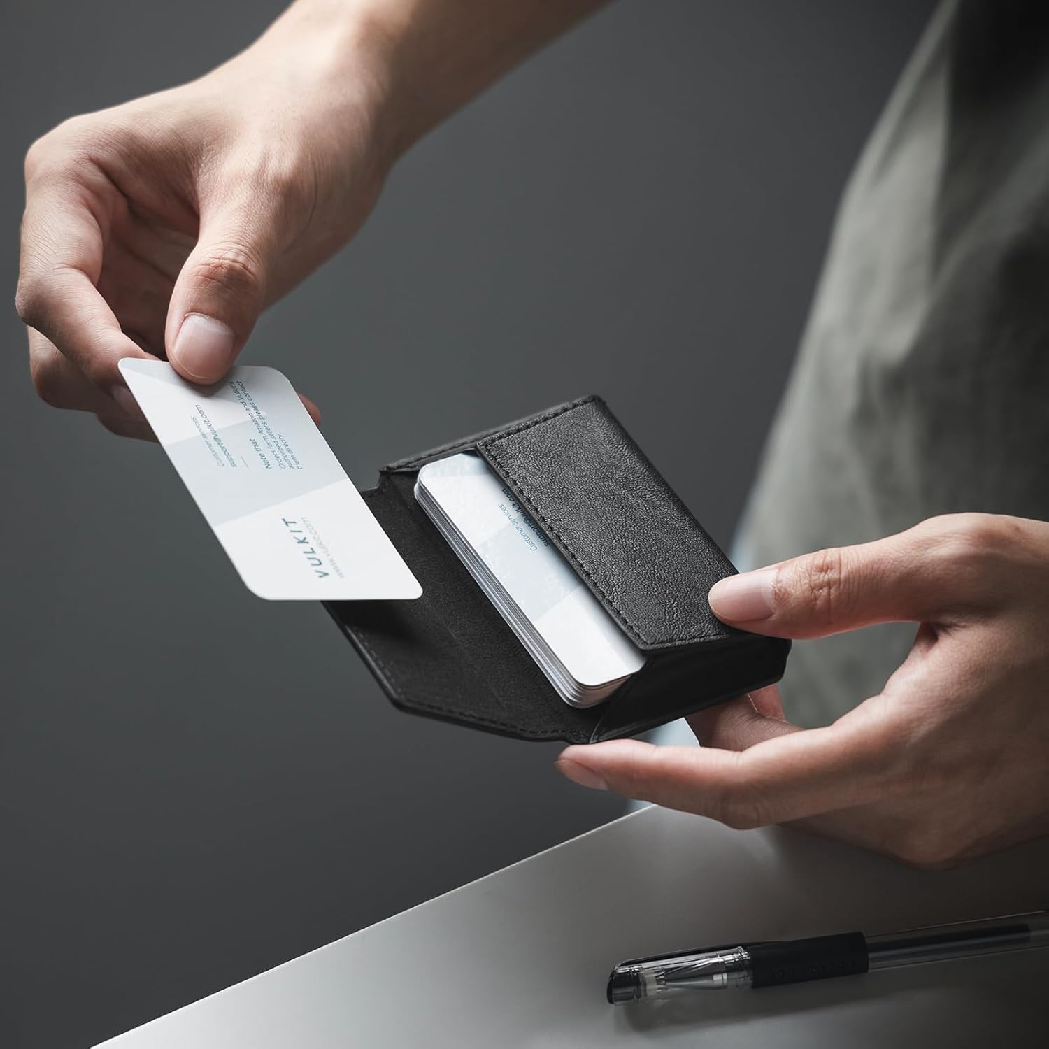 VULKIT Leather Business Card Holder Case for Men Slim Pocket Business Card Wallet Name Card Case Holder, Holds 20 Business Cards Black