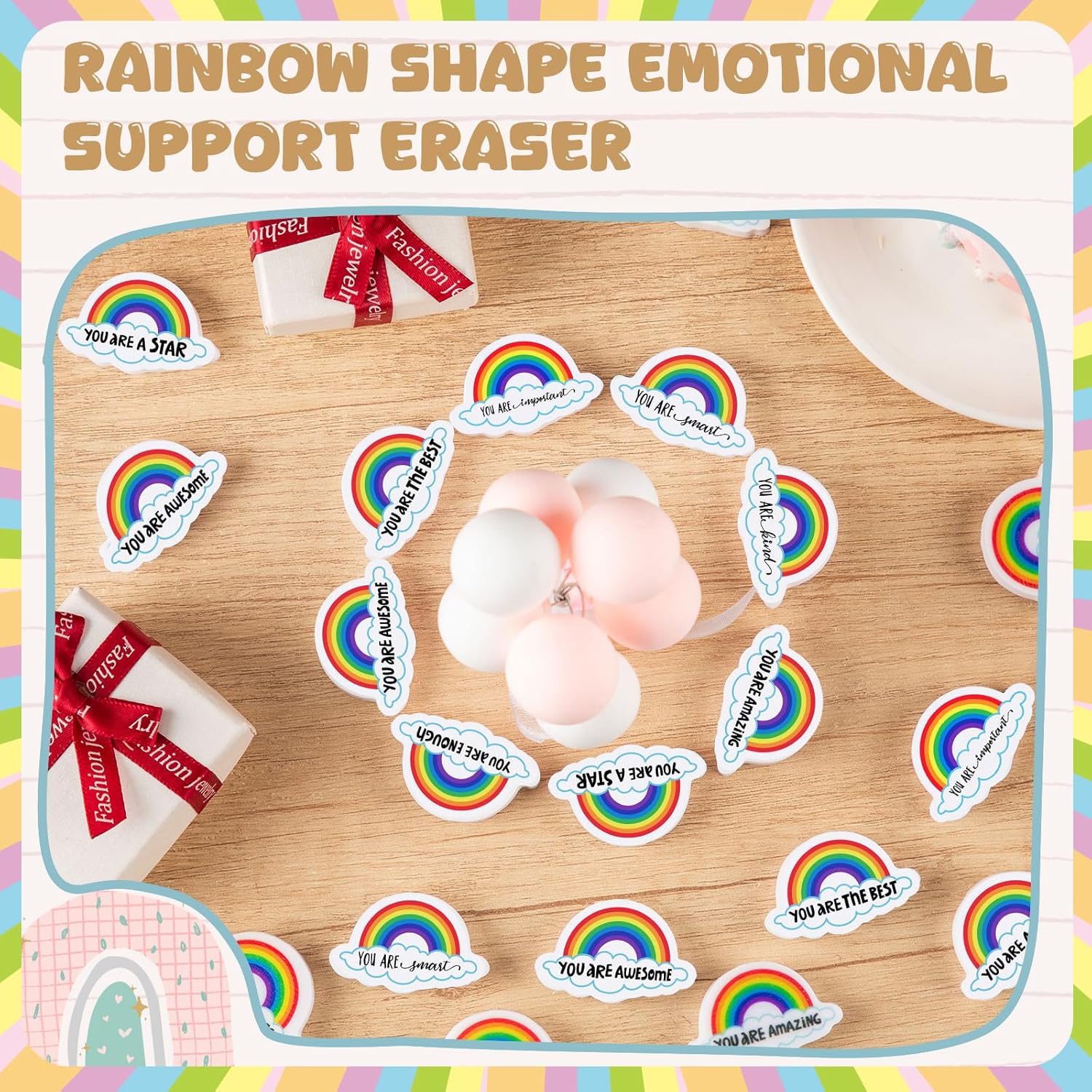 - Fun Design: the inspirational eraser design with rainbow shape, printed with 8 encouraging words. Ideal gift for office team and teachers