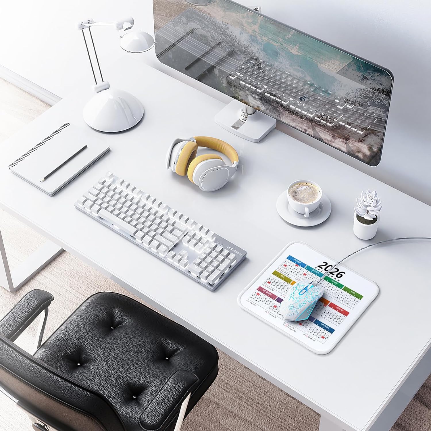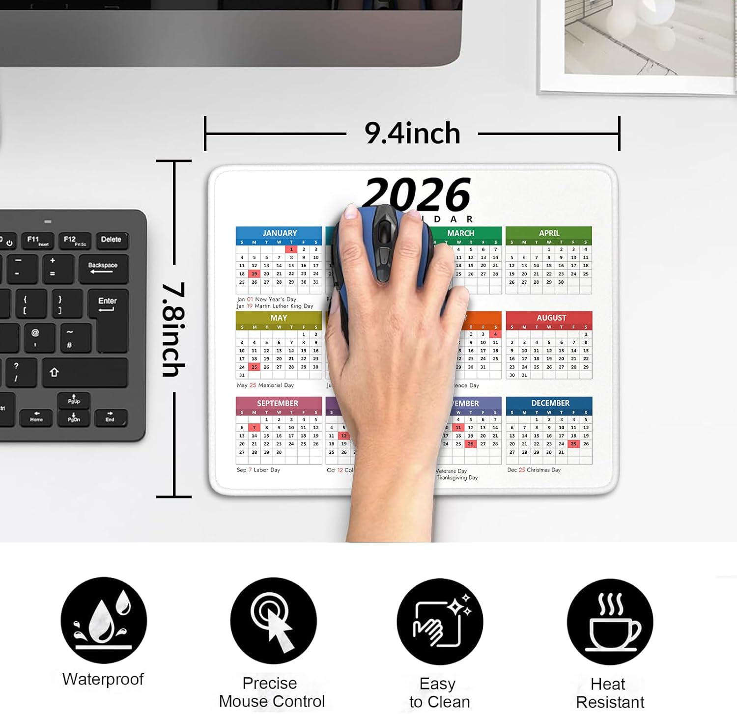 2026 Calendar Mouse Pad with Holidays, Computer Mousepad with Non-Slip Rubber Base, Ccolorful Mouse Pads for Computers Laptop Mouse 9.6 x 7.9 inch