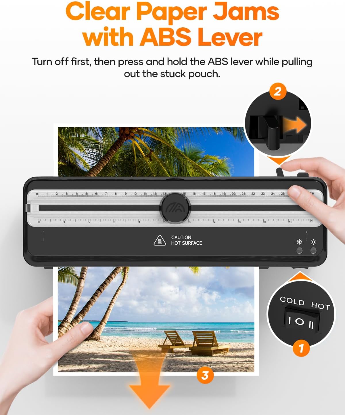 - Built-In Paper Trimmer — Features an integrated paper cutter, so you can easily trim and create neat, clean edges for all your laminated projects. No extra tools needed!