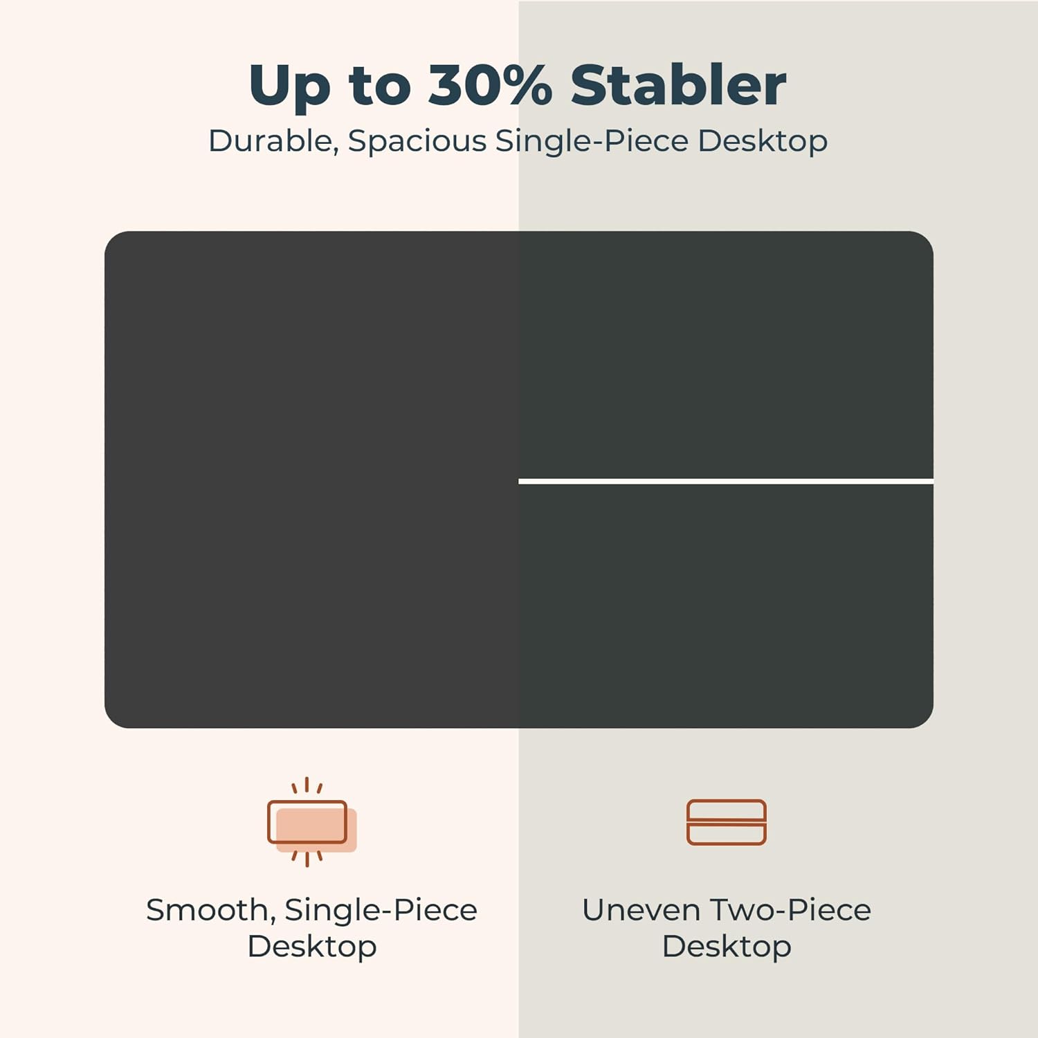 - Seamless One-Piece Desktop: No gaps, no wobble—just a smooth, stable surface. This one-piece height adjustable desk delivers superior stability and a sleek, modern look perfect for any home office.