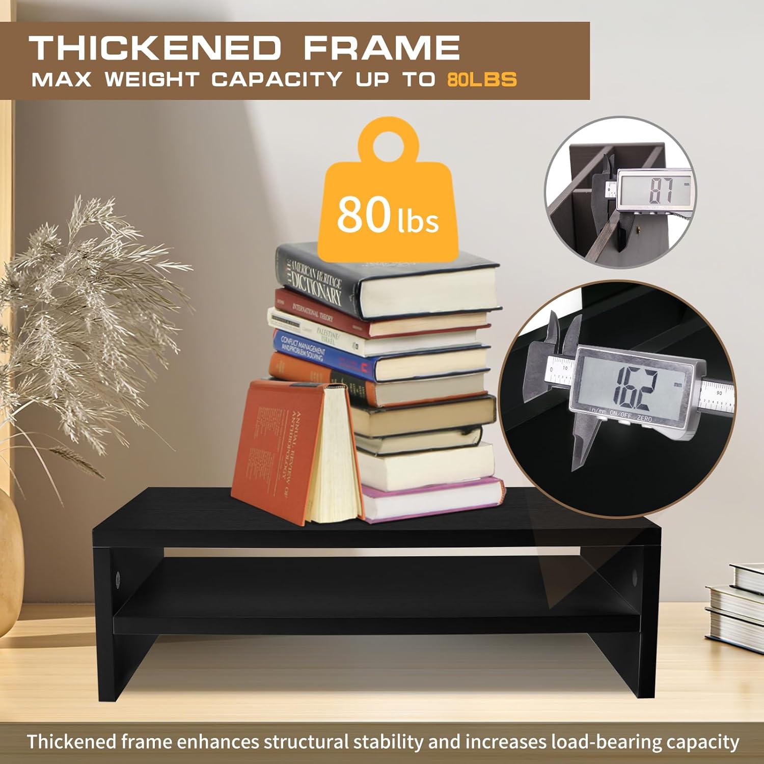 - Sturdy and Reliable Construction:Engineered to support up to 80 lbs, this stand riser provides exceptional stability for your office essentials. The reinforced frame and premium materials ensure long-lasting durability. The wooden monitor riser features soft rubber feet that provide complete stability for your display while protecting your desktop from scratches.