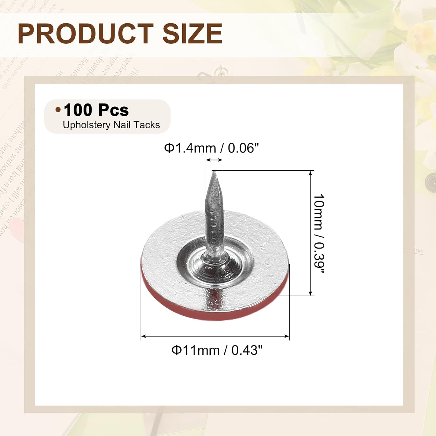 - [Size & Quantity] - The package comes with 100pcs decorative upholstery tacks. Sufficient quantity to meet your different daily needs. The overall size of upholstery nails is about 11mm x 10mm/0.43-inch x 0.39-inch(D*H)