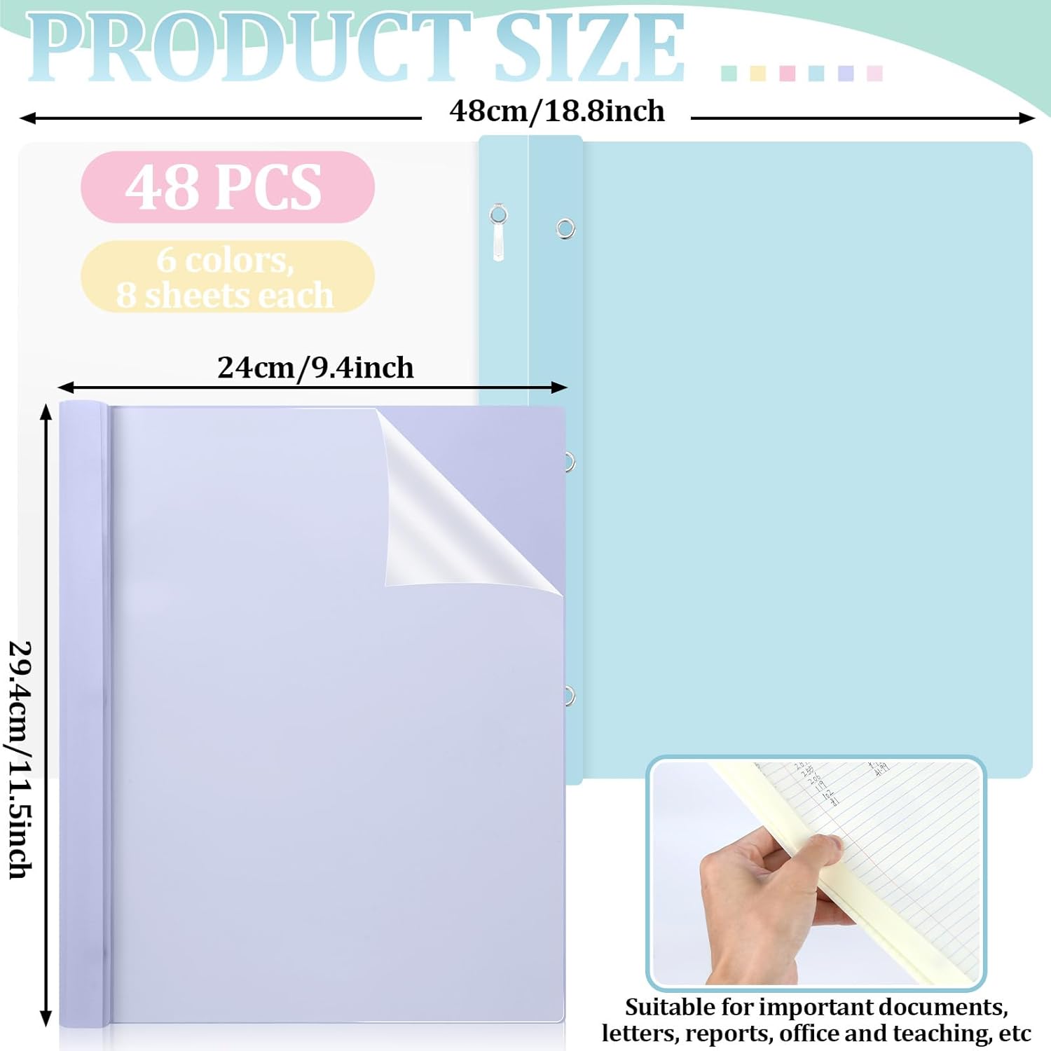 - Package Includes: You’ll get 48 clear front report covers in 6 different colors—great for keeping reports, school projects, and other documents looking neat and professional. The quantity in this set is enough to meet your daily use and backups. You can even share a few with classmates or coworkers.