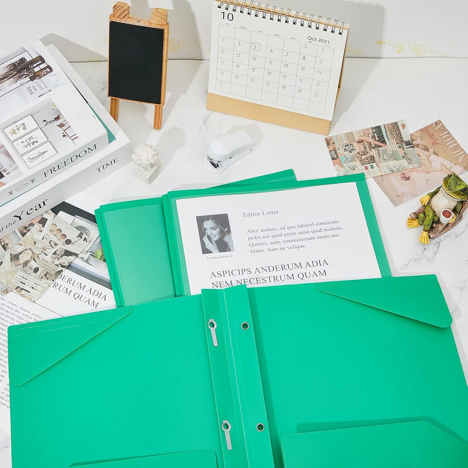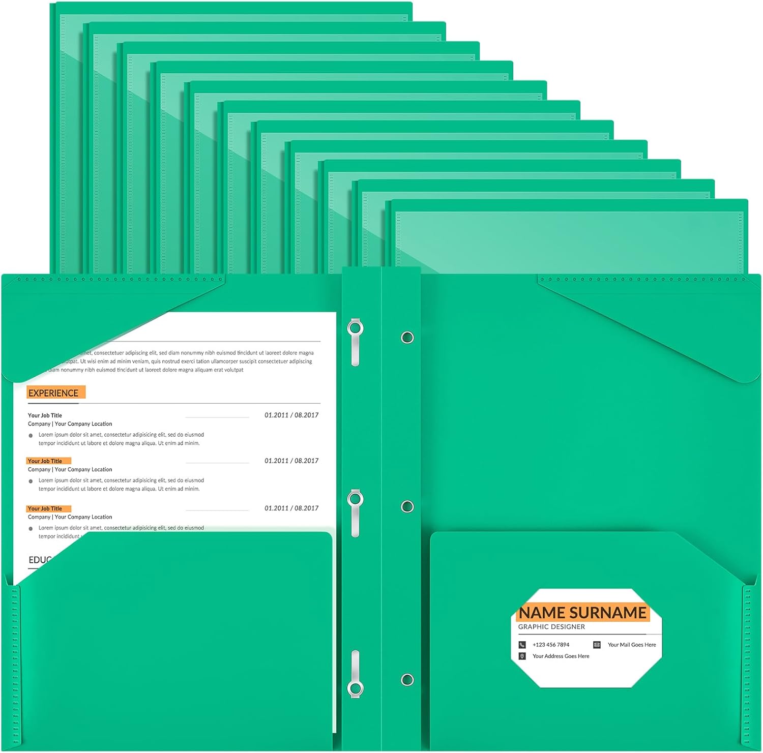- Practical and Useful: with a clear front pocket, you can put your catalog, tables, favorite reports, presentations and more for clear display; Each plastic folder has 2 internal pockets to help organize and store your letter sized paper and documents, there are also 3 prongs to secure your 3-hole loose leaf paper, and the card slot can hold your ID card or business card, practical for your daily work