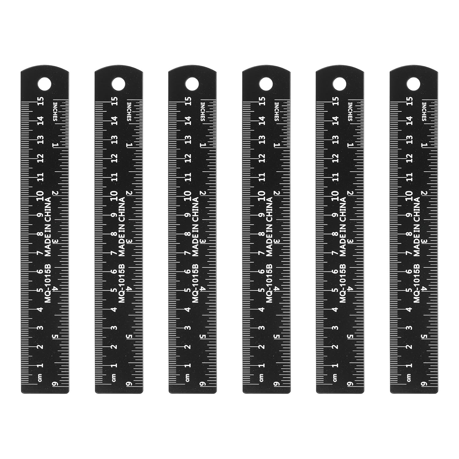 HARFINGTON 6pcs Metal Straight Ruler 15cm Metric SAE Aluminum Alloy Measuring Rulers Scale Tool with Hole for Measure Study Reading Classroom Office, Black