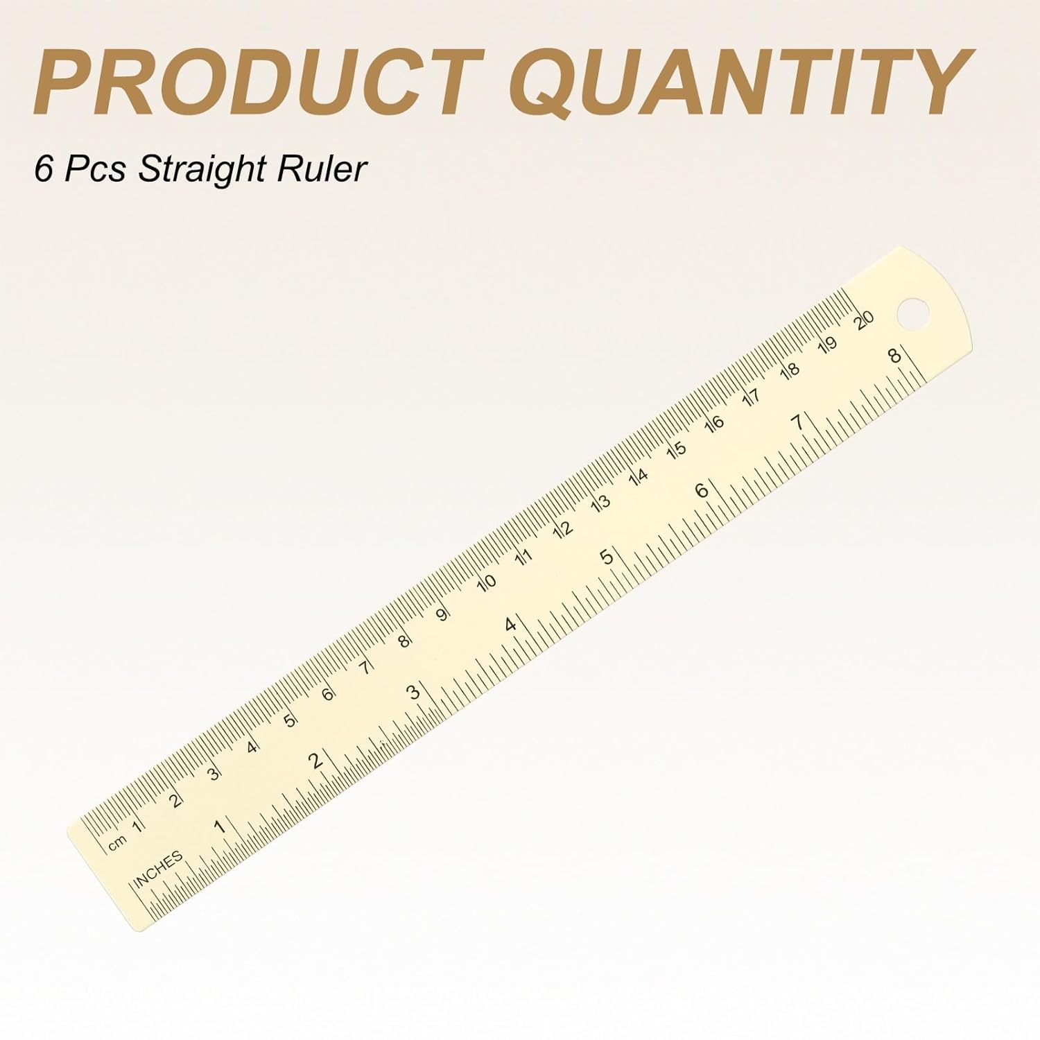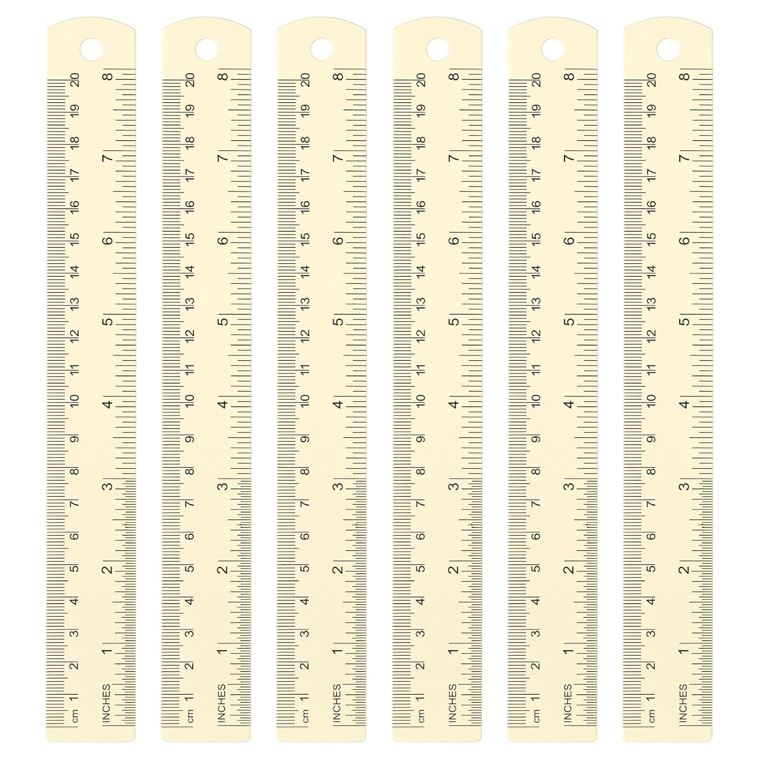 HARFINGTON 6pcs Metal Straight Ruler 20cm Metric SAE Aluminum Alloy Measuring Rulers Scale Tool with Hole for Measure Study Reading Classroom Office, White