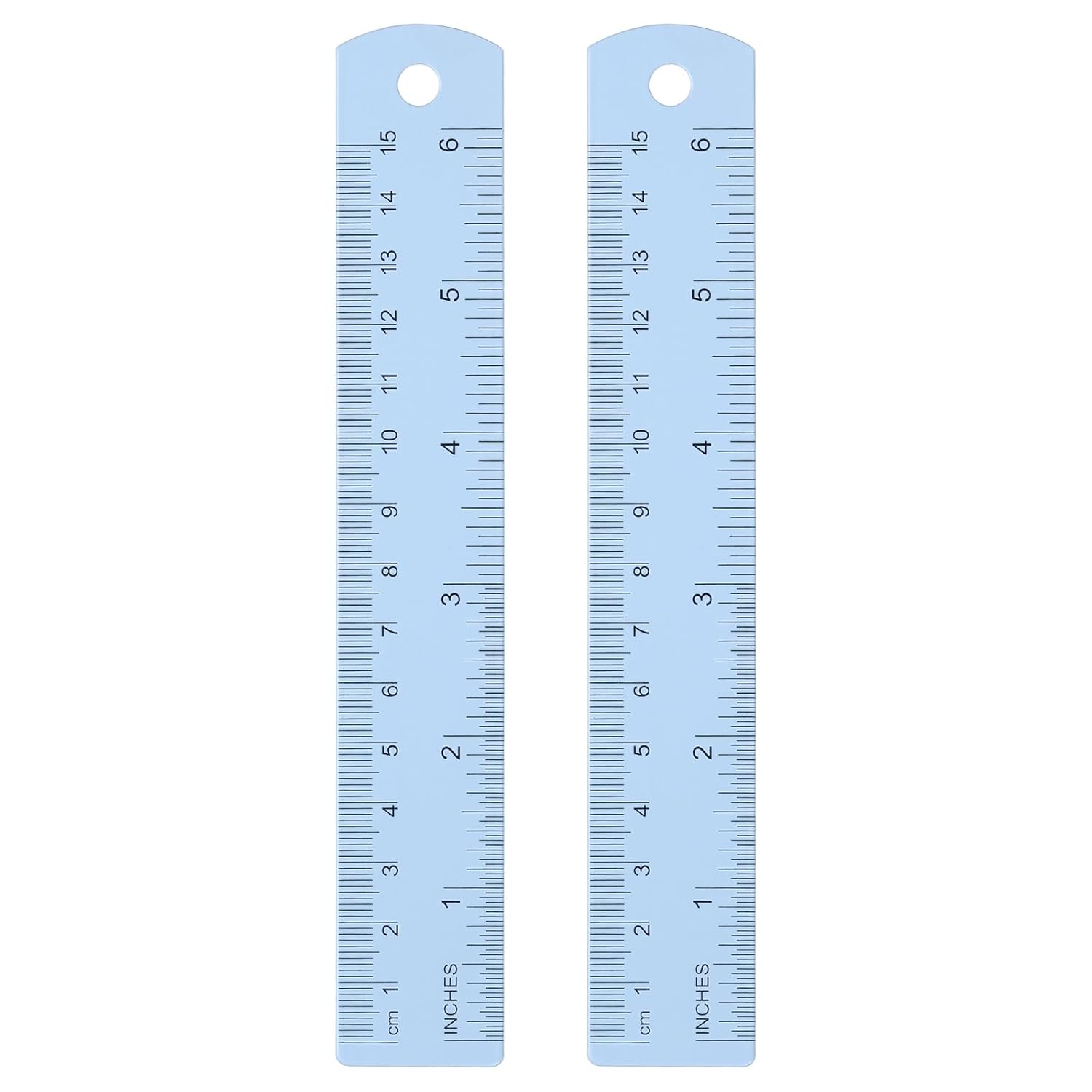 HARFINGTON 2pcs Metal Straight Ruler 15cm Metric SAE Aluminum Alloy Measuring Rulers Scale Tool with Hole for Measure Study Reading Classroom Office, Light Blue