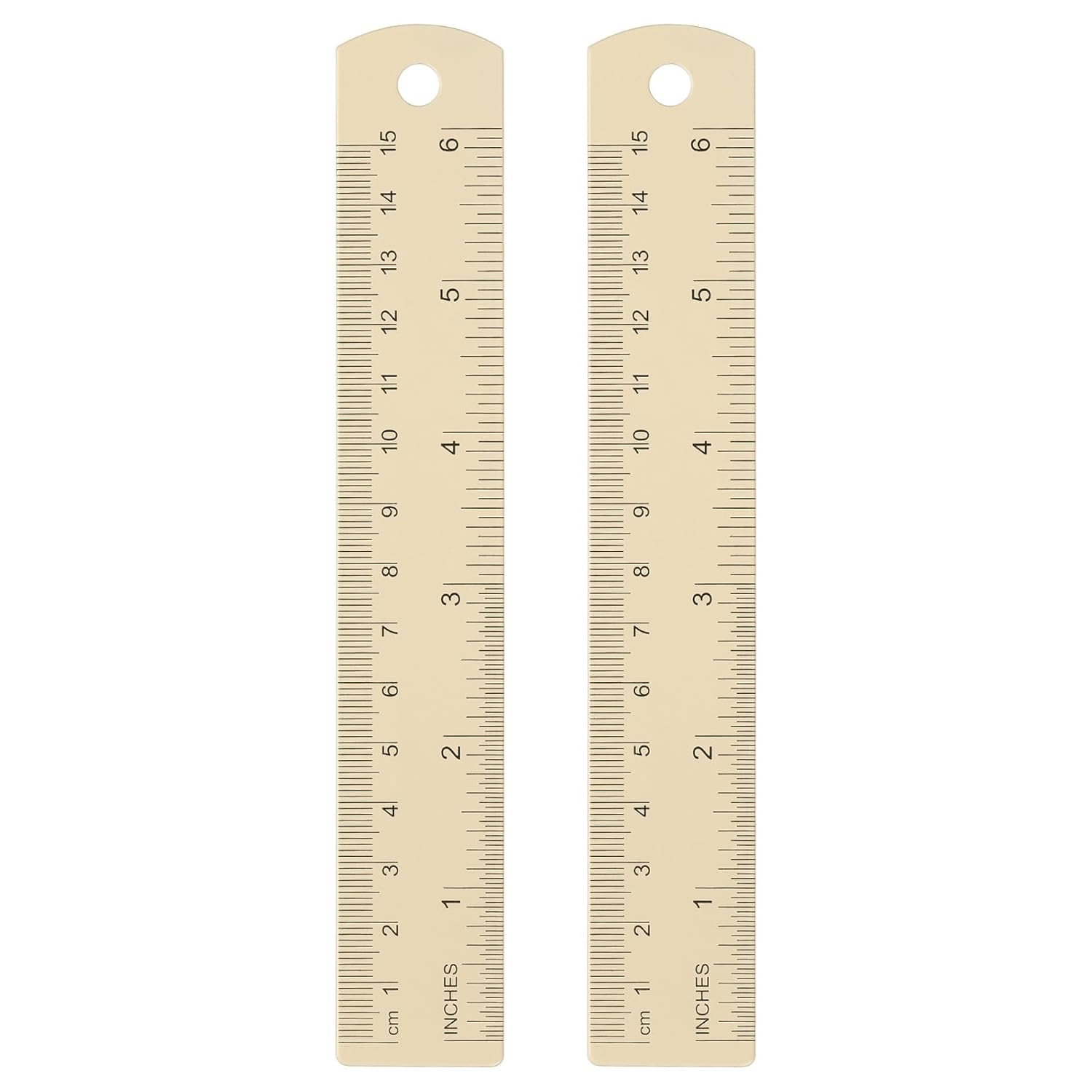 HARFINGTON 2pcs Metal Straight Ruler 15cm Metric SAE Aluminum Alloy Measuring Rulers Scale Tool with Hole for Measure Study Reading Classroom Office, Beige