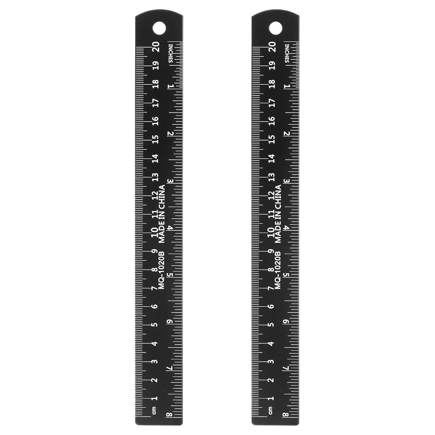 HARFINGTON 2pcs Metal Straight Ruler 20cm Metric SAE Aluminum Alloy Measuring Rulers Scale Tool with Hole for Measure Study Reading Classroom Office, Black