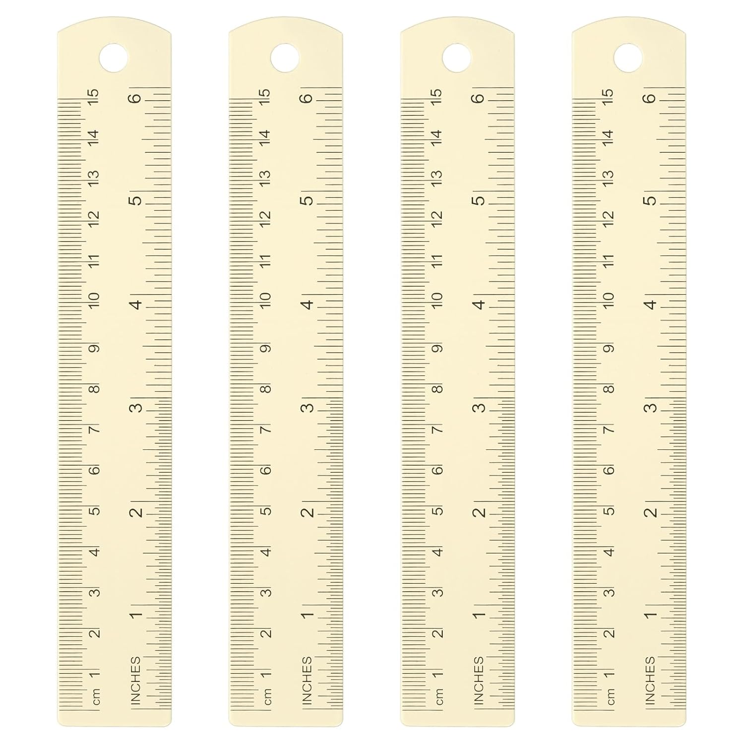 HARFINGTON 4pcs Metal Straight Ruler 15cm Metric SAE Aluminum Alloy Measuring Rulers Scale Tool with Hole for Measure Study Reading Classroom Office, White