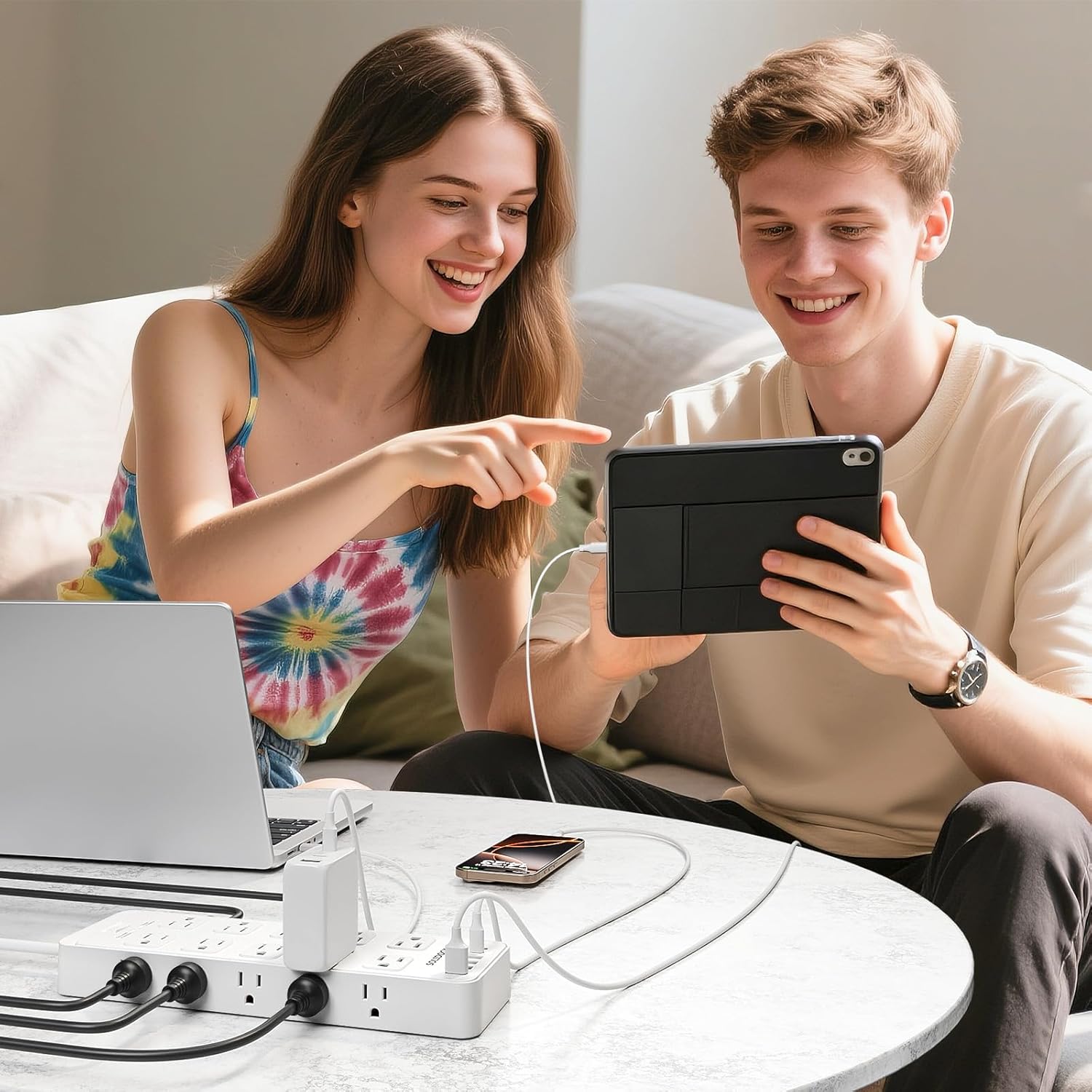 - 【Surge Protector Power Strip with 6 USB Charging Prots 】- The Surge Protector Power Strip 6 USB Chagring Ports (4 USB A Prots & 2USB C Prots) Total Max 18W,5V /3.6A, each USB A port features 5V/2.4A output. USB C charging port features 5V/3A MAX. Built- with smart technology, detecting charging devices and deliver optimal charging speed automatically, compatible with Kindle and most USB devices.