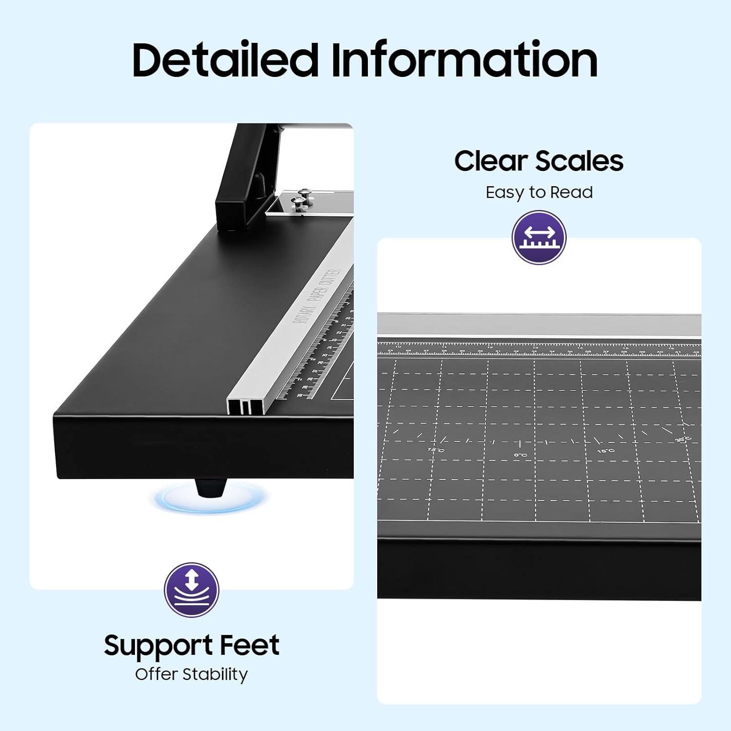 - 【Good Stability】---Durable steel paper trimmer base is built to withstand heavy use without warping, cracking, or losing stability. Non-slip rubber feet keep the cutter in place during use.