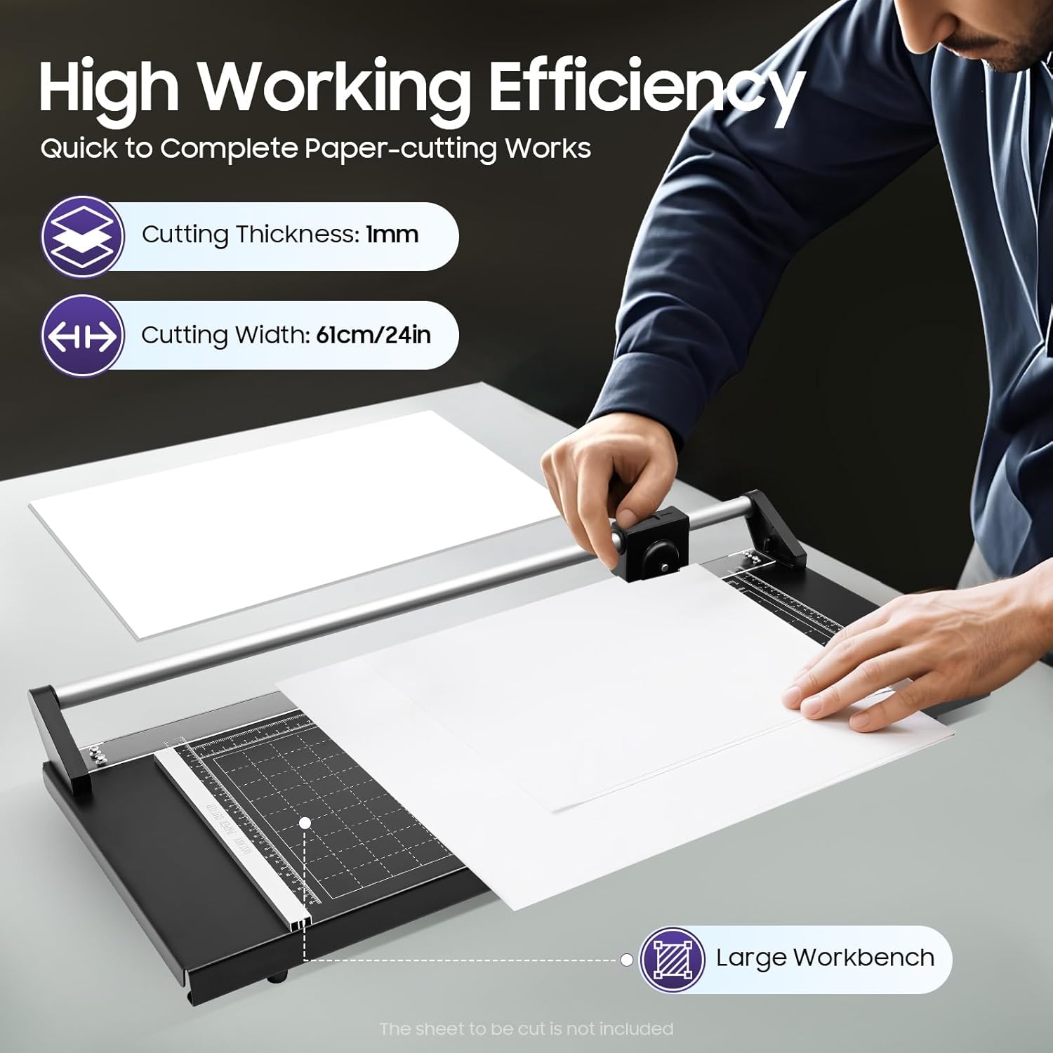Rotary Trimmer Paper Cutter, 24Inch Manual Paper Trimmer for Crafting, Heavy Duty Rotary Papers Cutter Slider, Self-Sharpening Professional Cutting for Offices, Schools and Crafts
