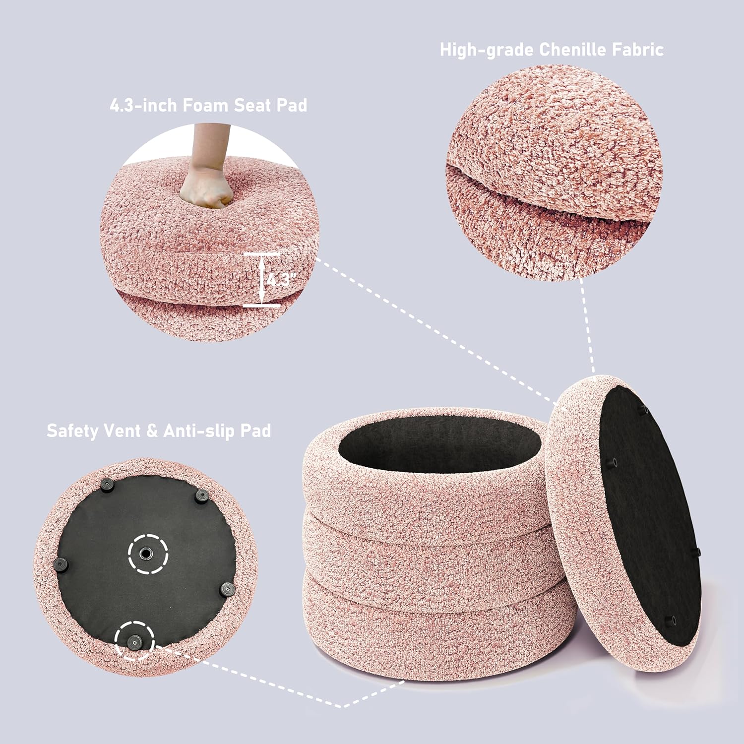 - 【No Assembly, Enjoy Soon】 The Round Ottoman with storage requires no assembly, allowing you to enjoy it right away. The circle ottoman with storage is perfect for a variety of rooms. If you have any questions, please feel free to contact us.