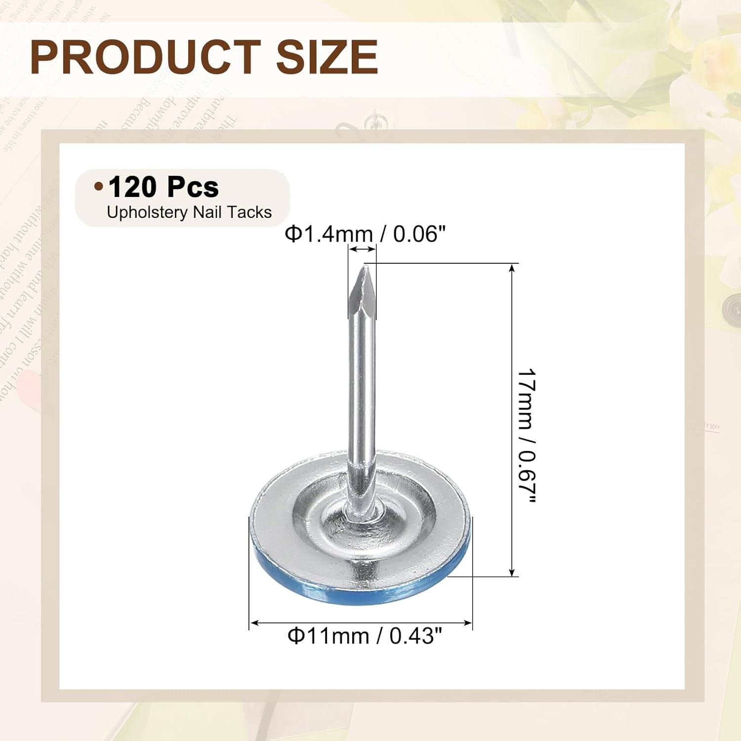 - [Size & Quantity] - The package comes with 120pcs decorative upholstery tacks. Sufficient quantity to meet your different daily needs. The overall size of upholstery nails is about 11mm x 17mm/0.43-inch x 0.67-inch(D*H)