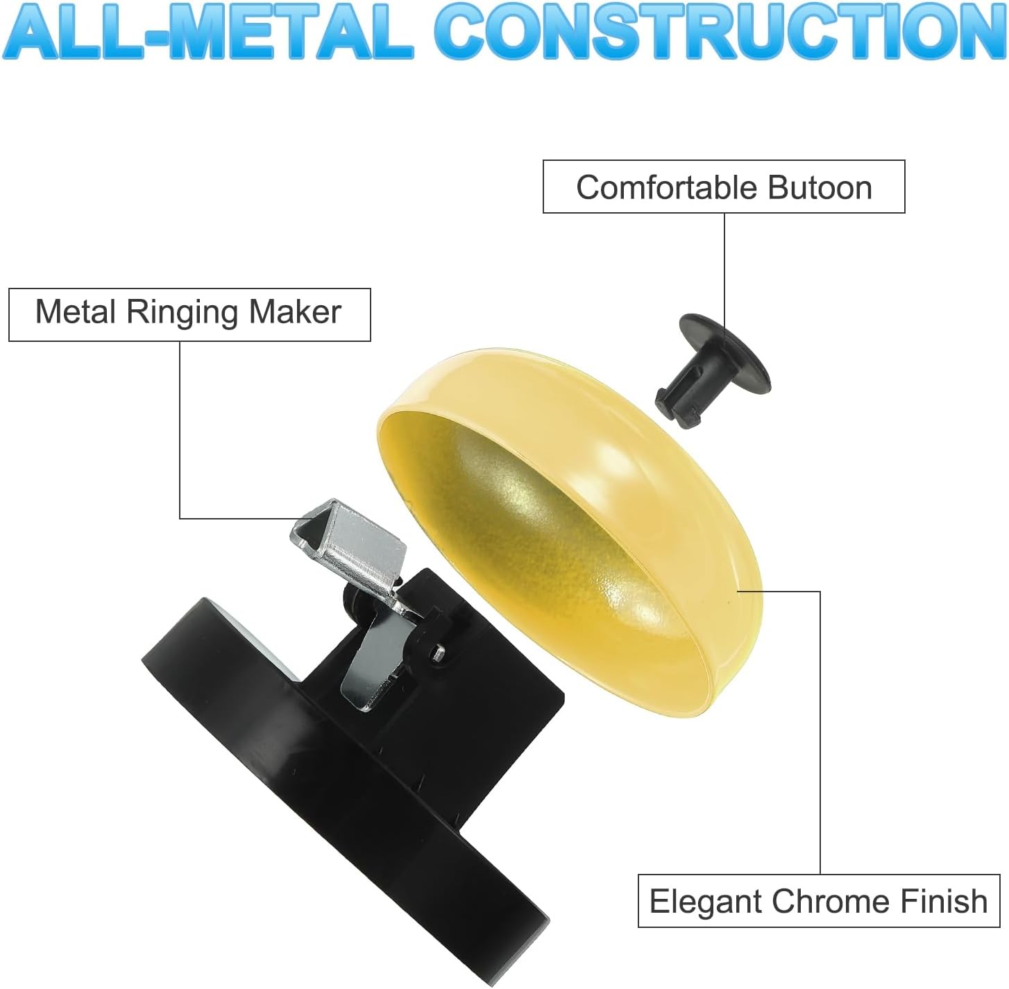 - Stable & Easy to Clean—The service bell's stable metal base can be placed on a flat table or floor. To remove fingerprints, you only need to wipe it with a cloth.