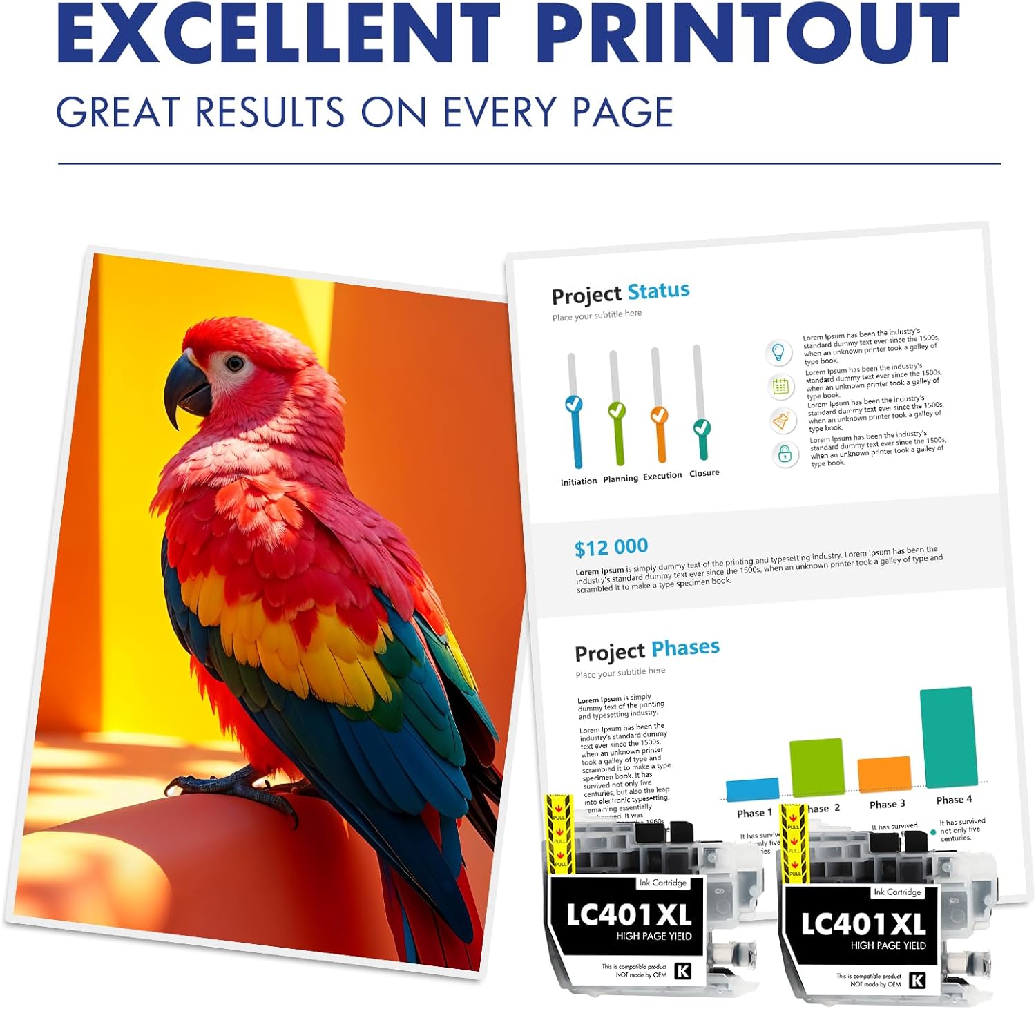 - Package Content: 2 x LC401XL Ink Cartridges for Brother Printer Black, 1 x User Guide (NON-OEM Cartridges)