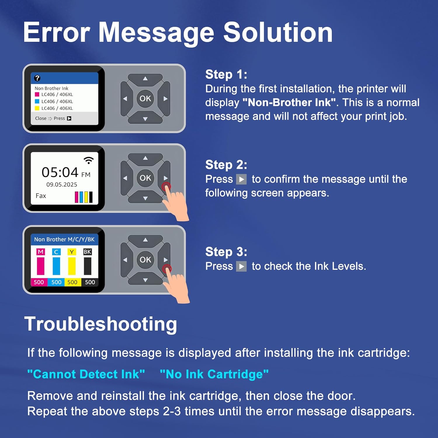 - What’s in the Box – 4-Pack LC406XL Value Set, Includes 1x Black, 1x Cyan, 1x Magenta, 1x Yellow LC406XL Ink Cartridges, plus a User Guide. (Non-OEM, fully compatible replacement cartridges)