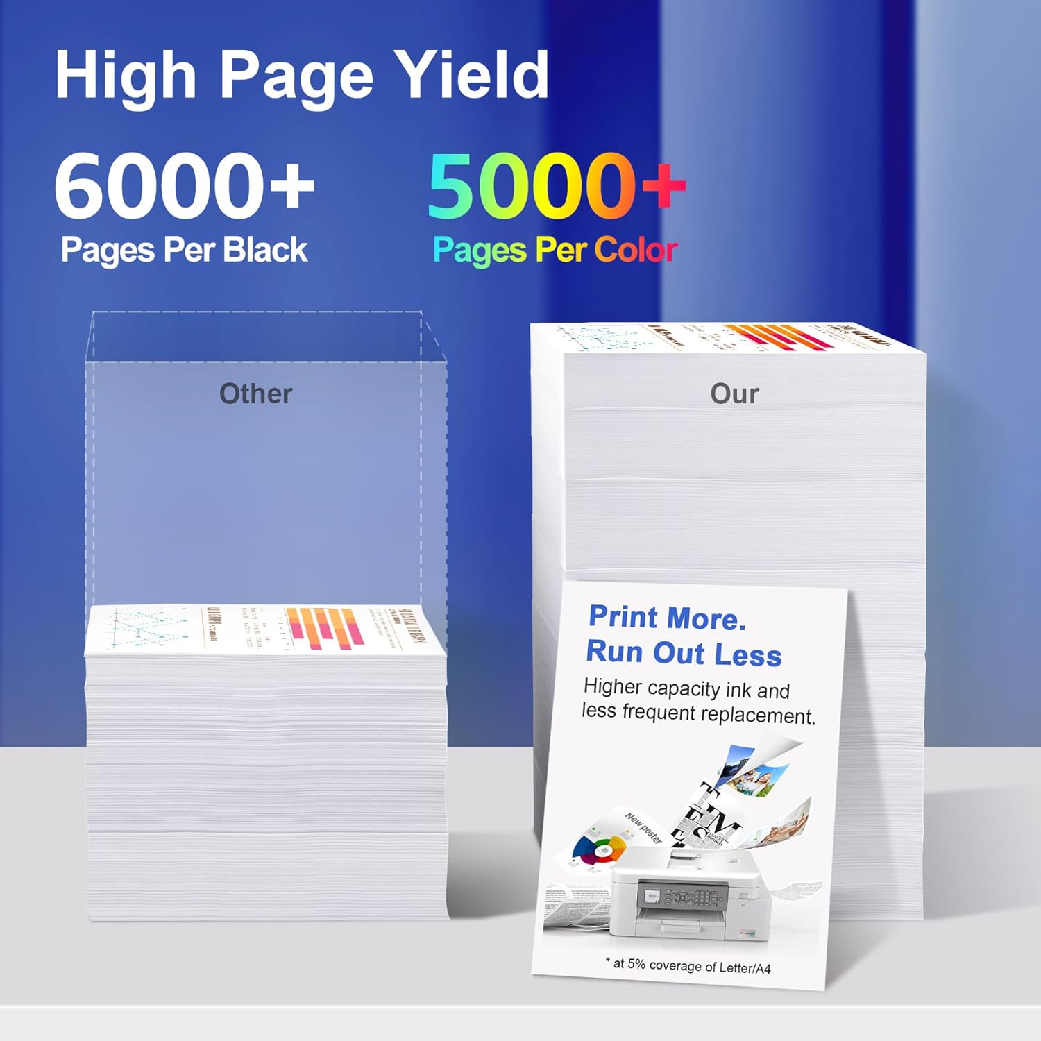 - Stretch Your Budget: Print more for less! Get up to 3X printing cost performance with our LC406XL cartridges compared to OEM brands. Each black cartridge yields up to 6,000 pages, while each color cartridge delivers up to 5,000 pages (at 5% coverage on Letter/A4). Perfect for high-volume home or office printing