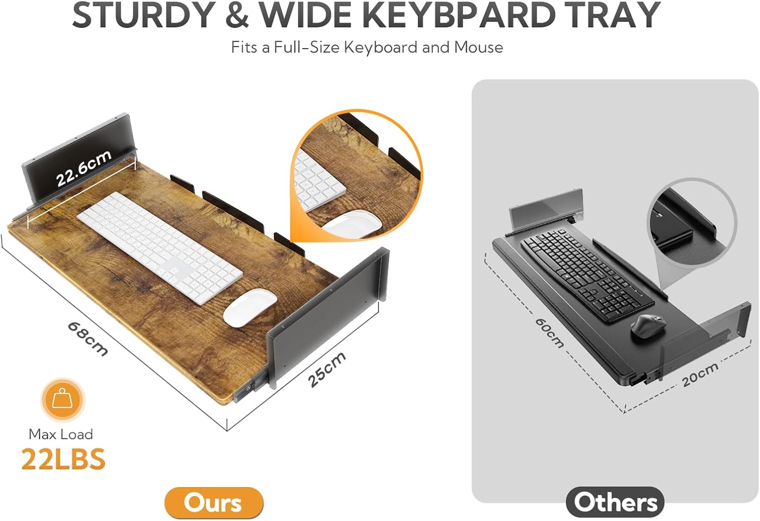 YDN Standing Desk with Keyboard Tray, 55 Inch Height Adjustable Desk, Brown Stand Up Desks for Home and Office, 55inch Rustic Brown