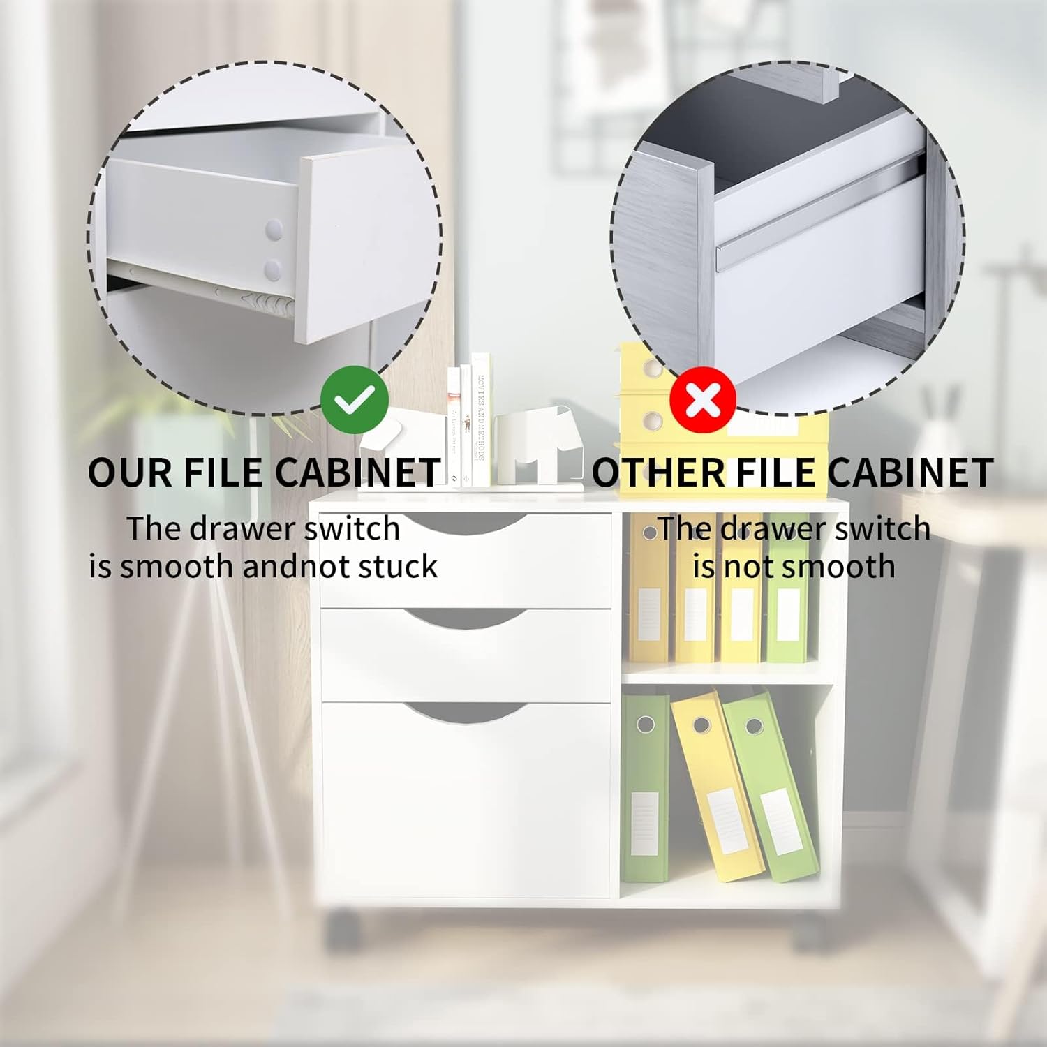 - MULTIFUNCTION: The file cabinet with 3 drawers and open shelves which can be adjustable for 5 heights. Multi-space design is convenient for file classification and better storage of your files