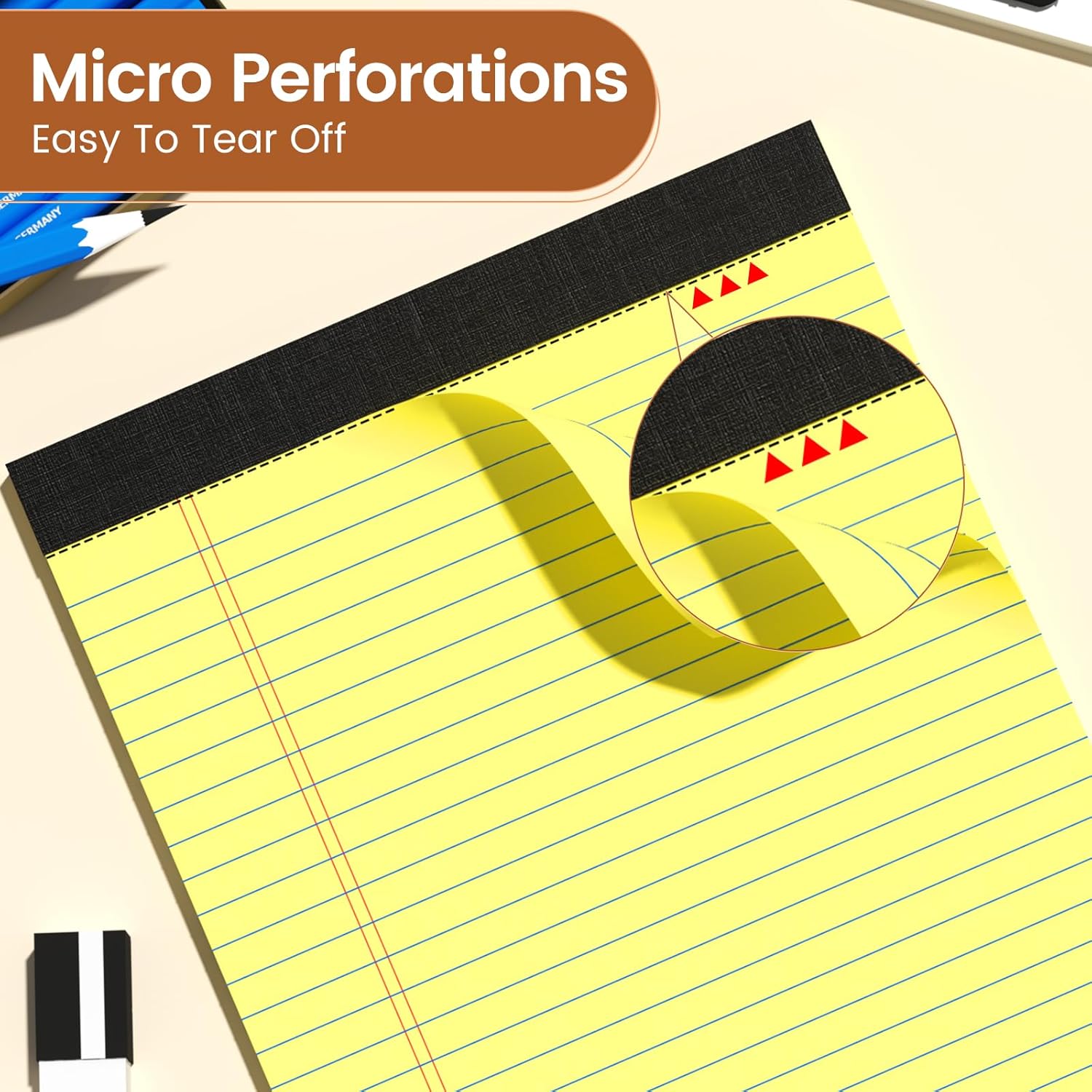 - Easy to Tear: Legal pads are designed with perforated that make it easy to tear the paper. This is a useful feature for lawyers and other professionals who need to quickly share notes or documents with colleagues.
