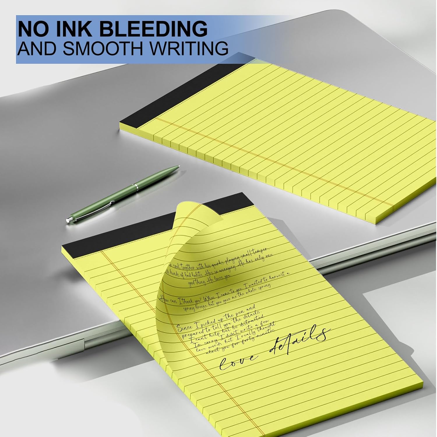 6pcs Small Note Pads, Yellow Notepads 5x8 College Ruled Notebook, Writing Pads 5 x 8, Legal Pads, Memo Pad Paper Perforate Narrow Ruled Notebooks for Work, School, Office,30 Sheets/Pack