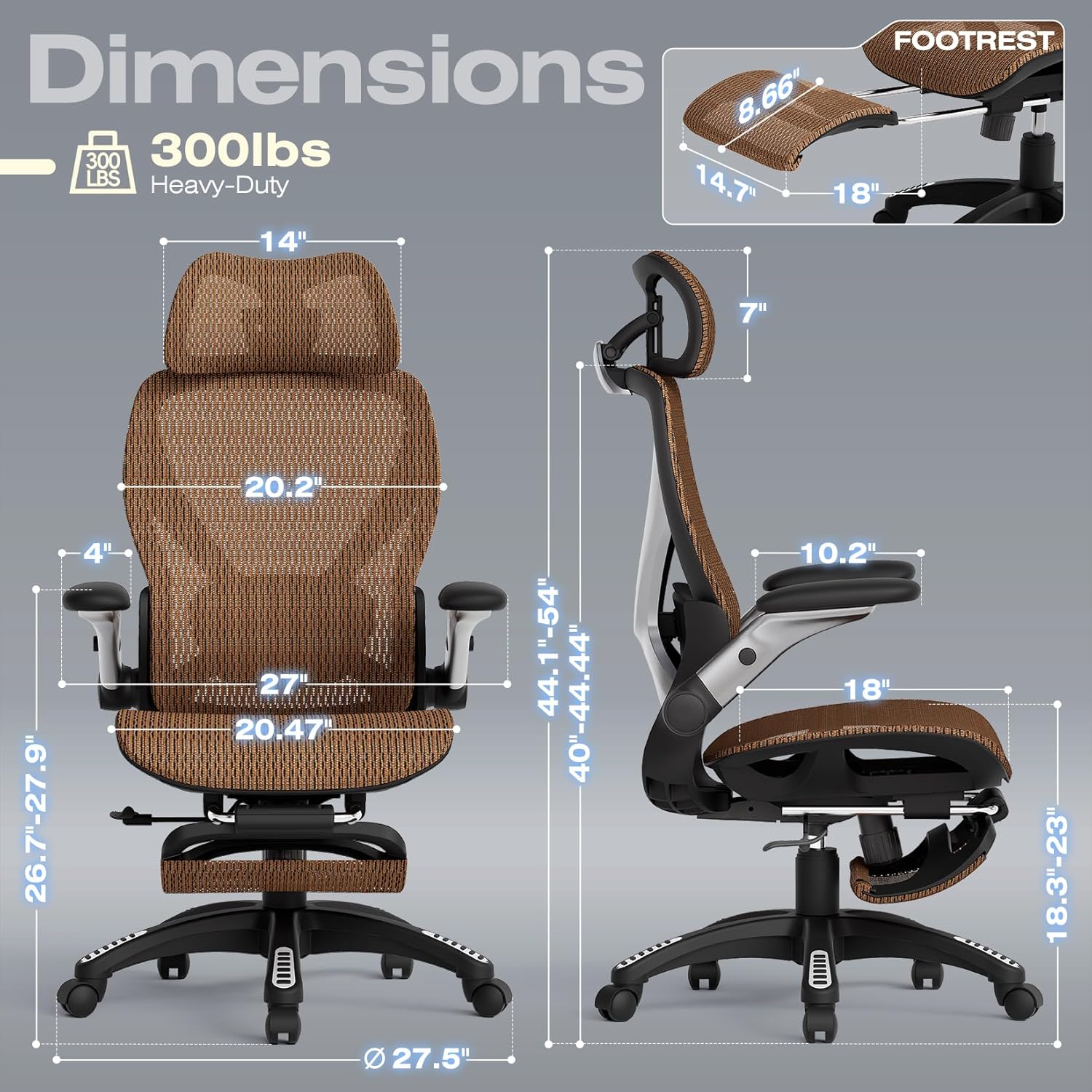 - 【Your All-Day Comfort Solution】 Premium Ergonomic Desk Chair with Footrest featuring dynamic 3D lumbar support, 5D Flip-Up Armrests, and extra-wide 3D breathable headrest, 2-position angle foot-rest, perfect for home office chairs seeking ultimate comfort
