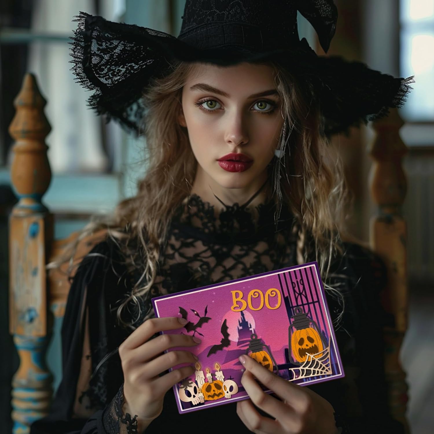 - Halloween Pumpkin Lamp Theme: The cut dies are designed with pumpkins, skulls, cat, lamps, webs, bats, bone patterns, you can use these cut dies to make unique card holder, multiple styles of die cuts can meet your DIY requirements