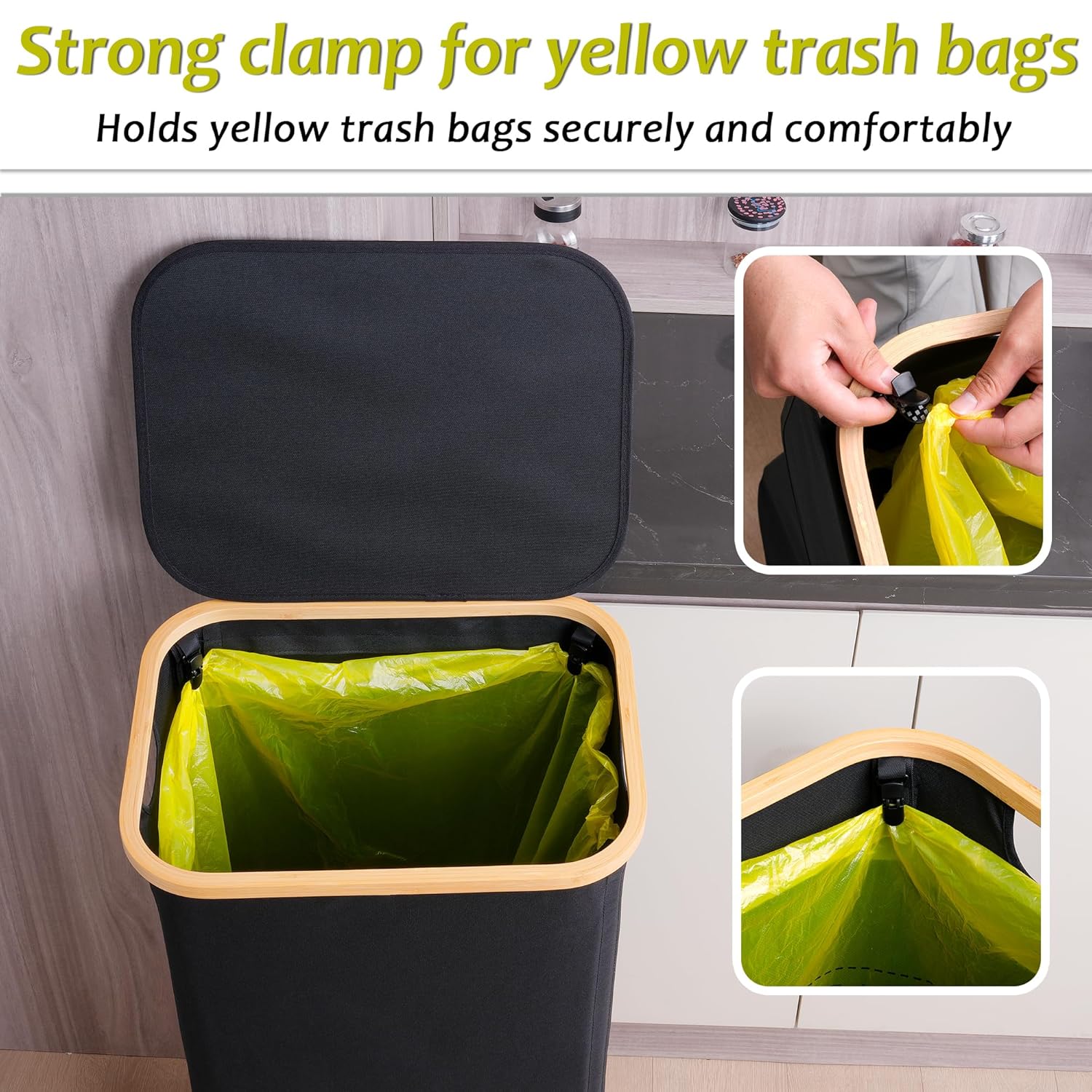 - 【Trash Can with Lid Design】: It effectively isolates the odor emitted by the garbage. The garbage bag holder completely conceals the yellow garbage bag, creating a better living environment.The recycling bin for kitchen is made of Oxford cloth and bamboo basket, using environmentally friendly materials, lightweight, thick Oxford cloth is durable, not easy to damage, lightweight, breathable fabric, easy to clean.