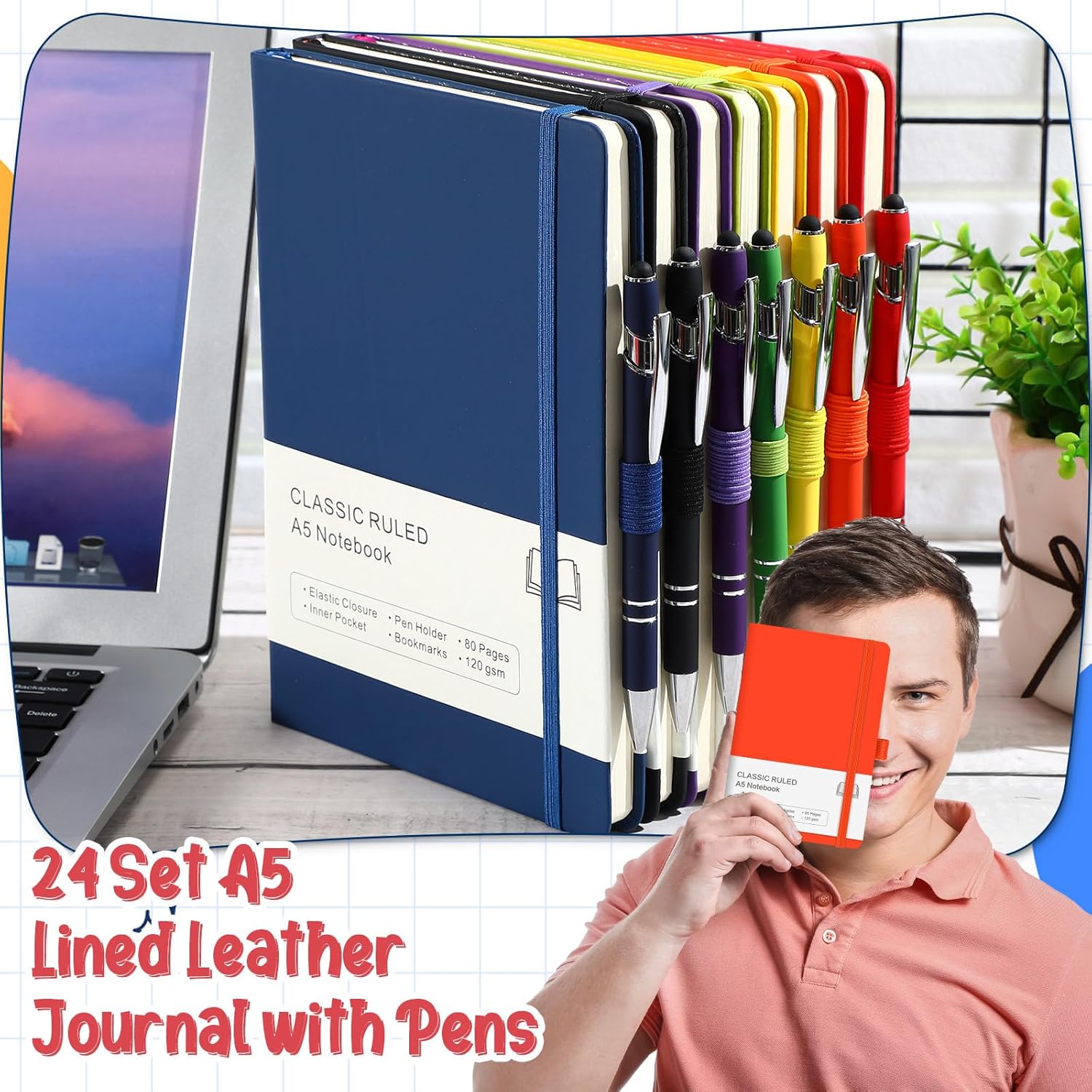 24 Sets Journal Notebook Bulk A5 Hardcover Notebook Classic Journal Set with Pen Holder with Pens for School Business Work Travel Writing (Multicolor)