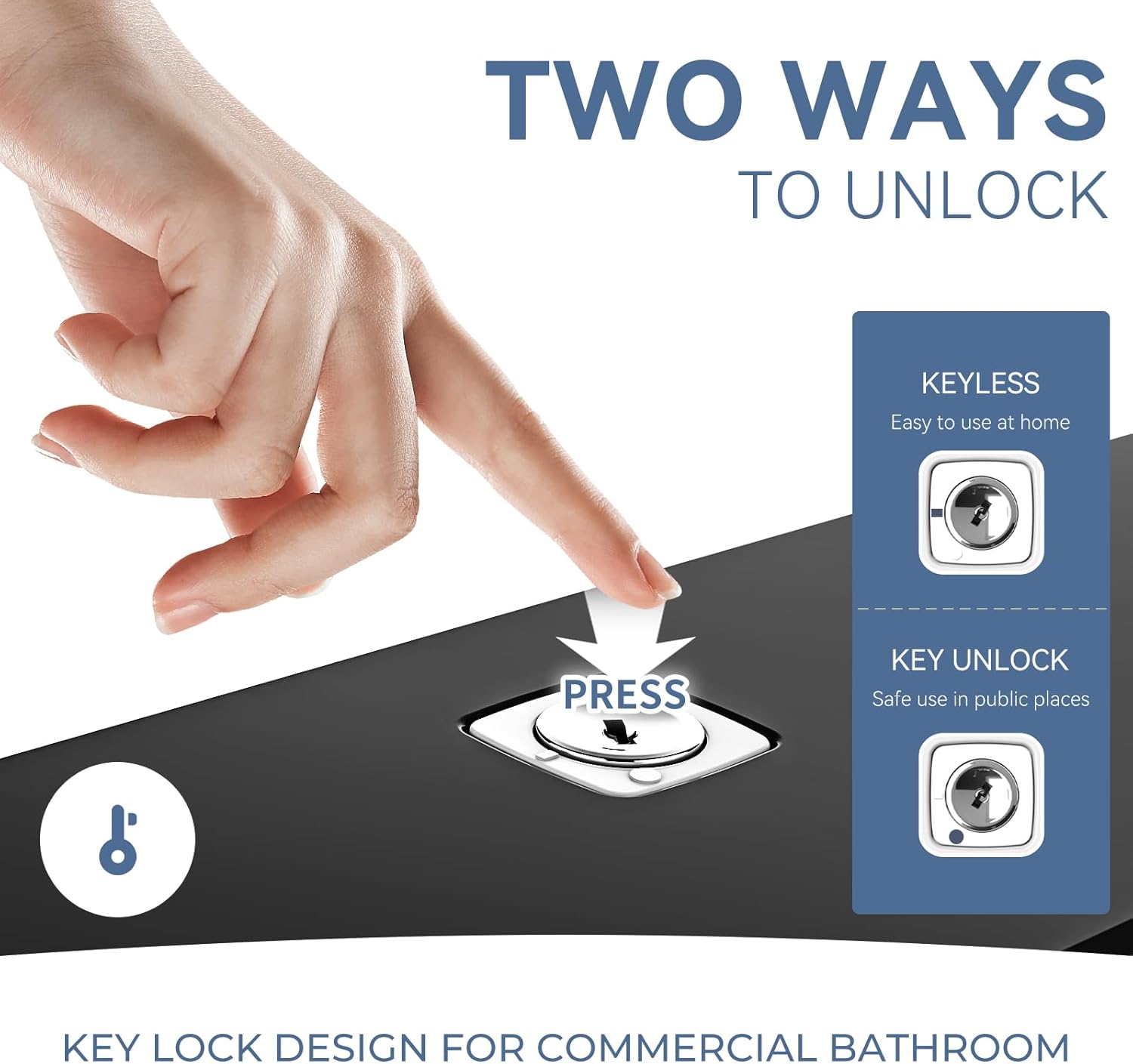- Locking Key Design -- this paper towel dispenser features a lock design . Keep your bathroom, kitchen, office or any other high traffic area carefully sanitized and immaculate.