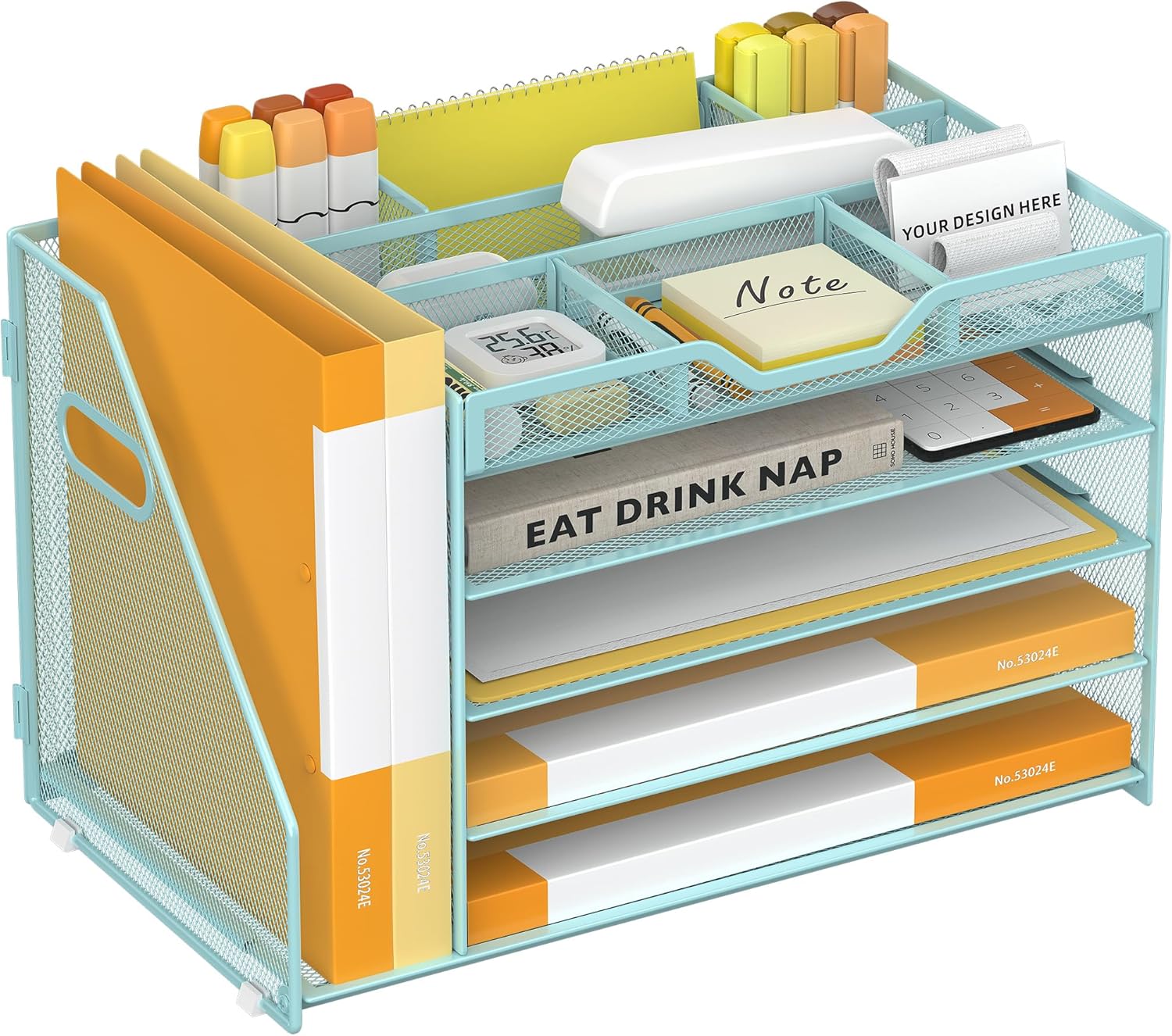 - Quality Materials and Superb Craftsmanship-Featuring a lightweight and durable metal mesh construction with a sturdy frame and powder-coated finish that ensures the desktop file manager won't bend or break when holding large quantities of paper, files and books, the file manager has a smooth finish that complements the office's work decor