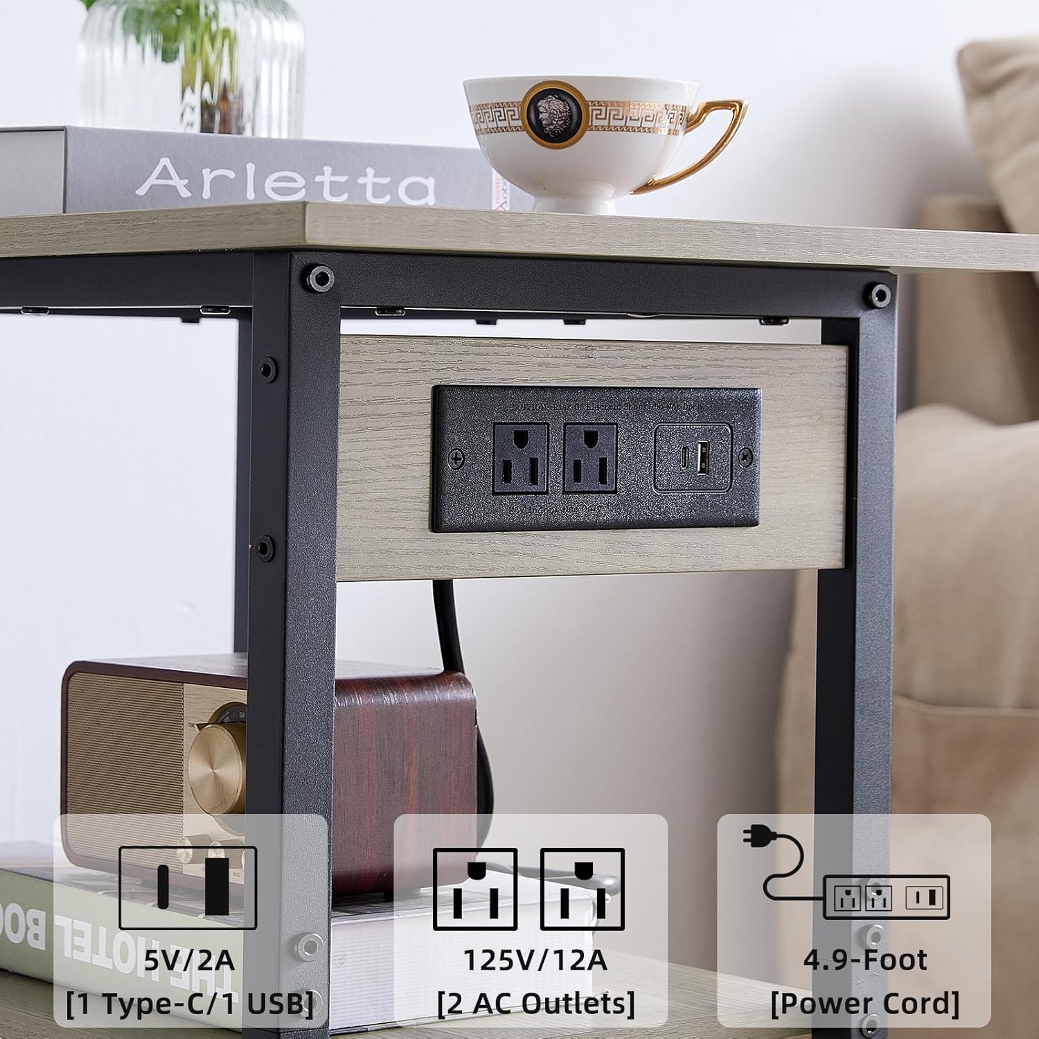 - 【Printer stand with Charging Station】The printer stand has 2 standard plug outlets, 1 USB interface and 1 Type-C interface, which can charge printers and other office equipment simultaneously. The Lerliuo printer stand's spacious top tabletop and bottom shelf provide extra space, which is flexible and convenient to free up more workspace, thus keeping the desktop tidy and creating a more comfortable working environment.