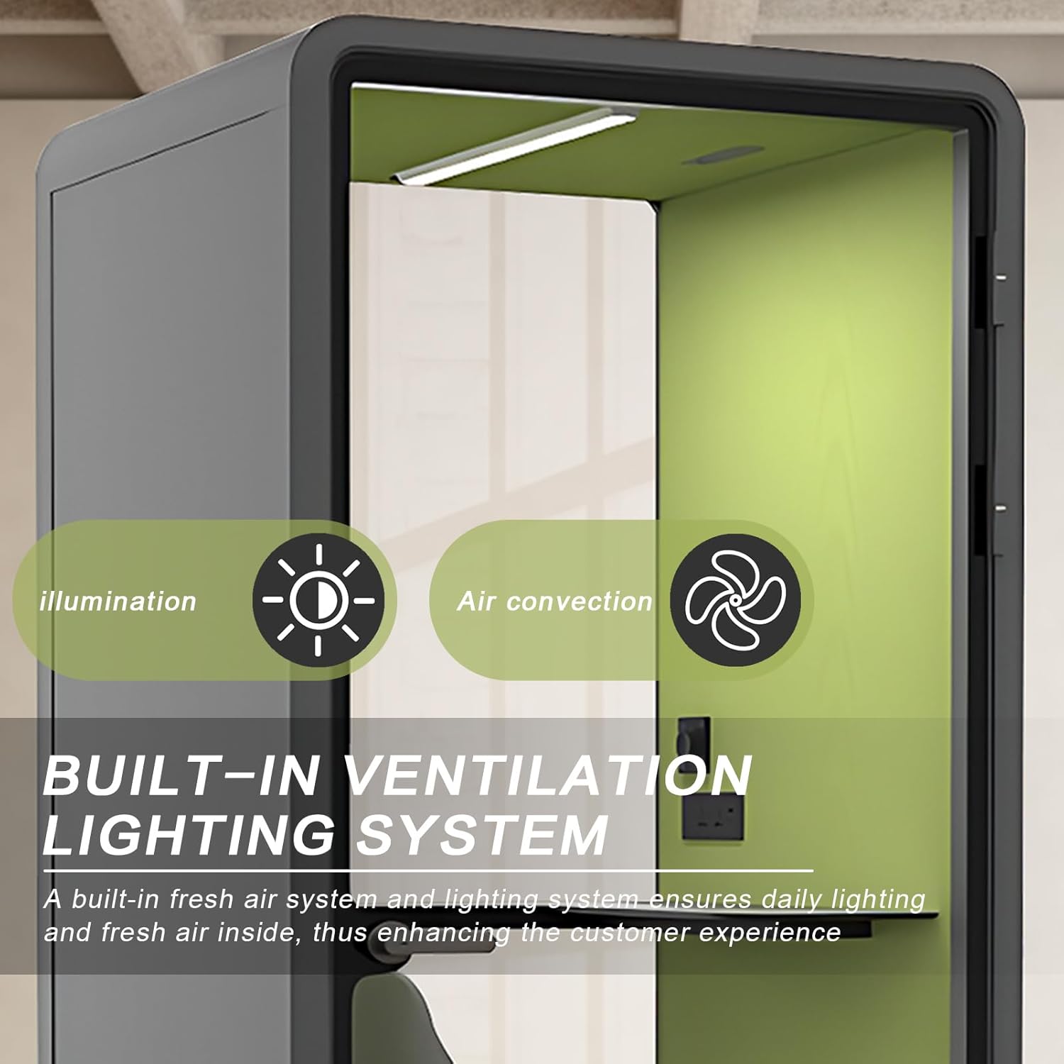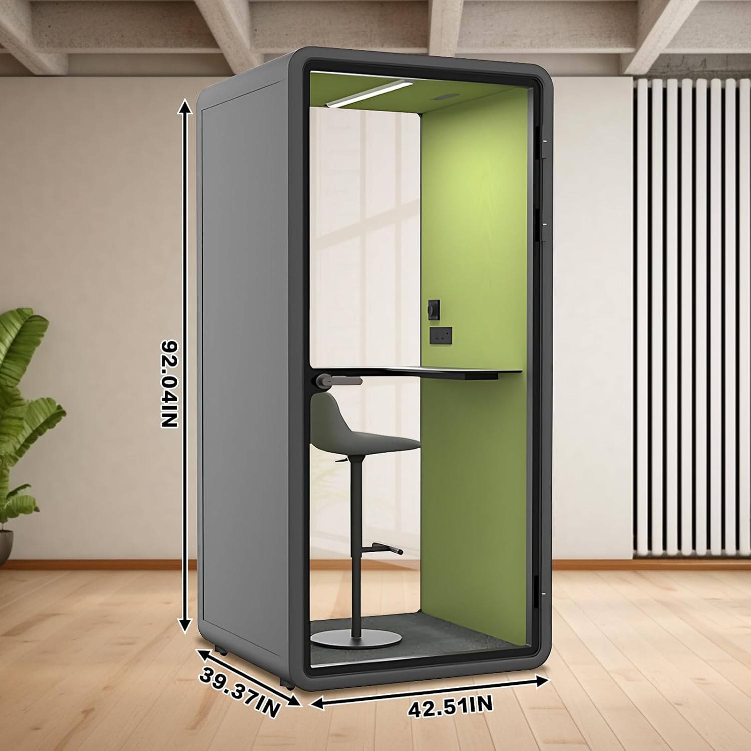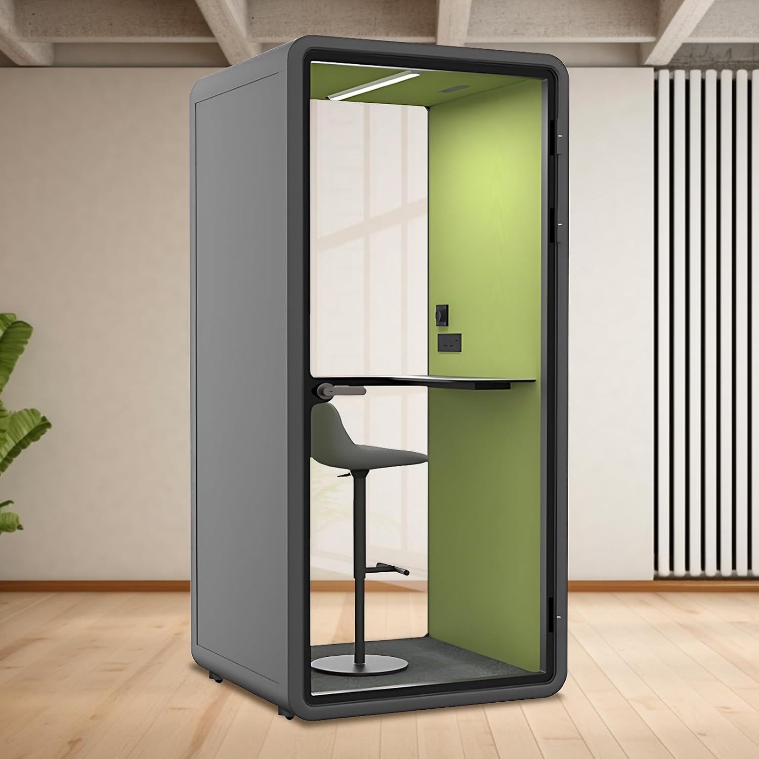 Office Sound Booth with Audio Privacy - Portable Soundproof Pod with Gray & Green Design,Phone Pod with Light,Ventilation,Socket for Phone,Singing,Work