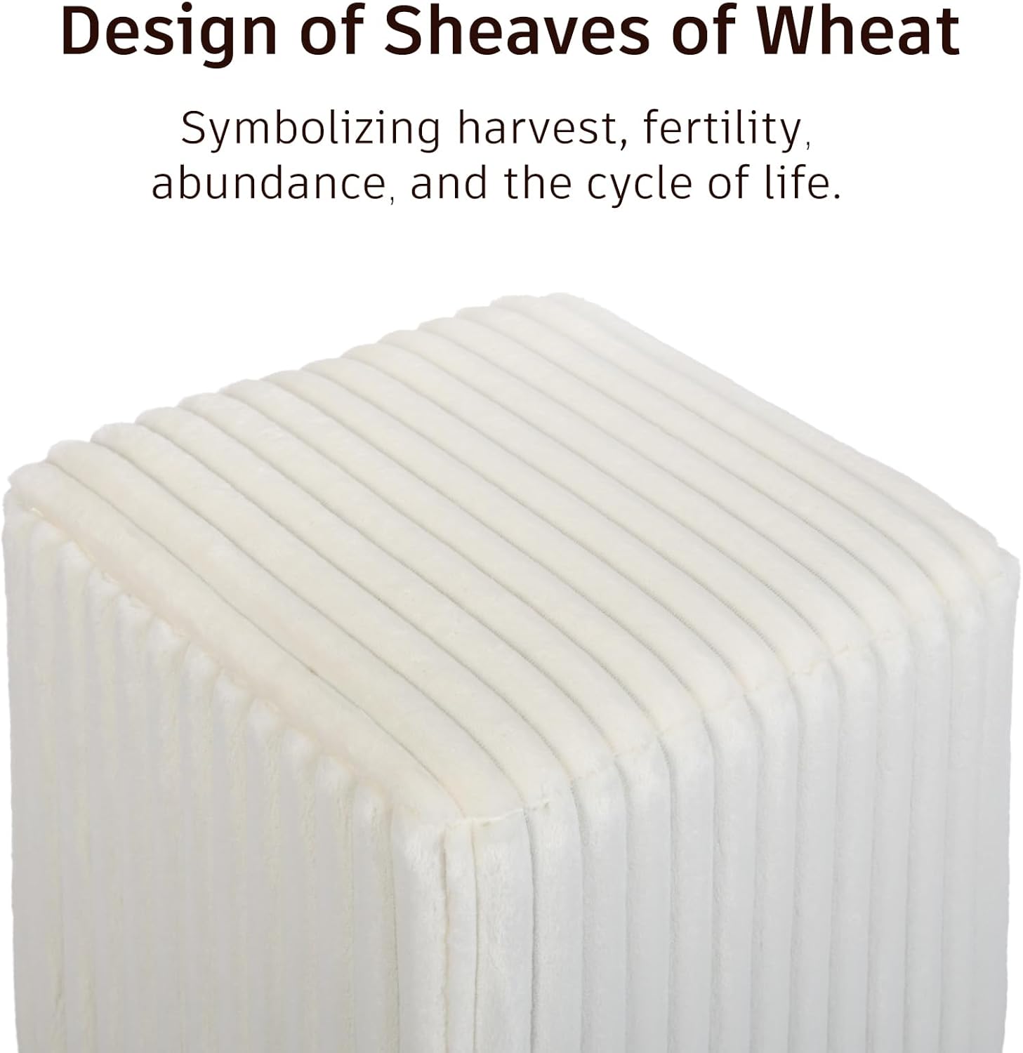 Modern Square Ottoman 2Pcs, Vertical Channel Tufted Foot Stool Ottoman, Velvet Upholstered Vanity Stool for Makeup, Bedroom, Living Room, White