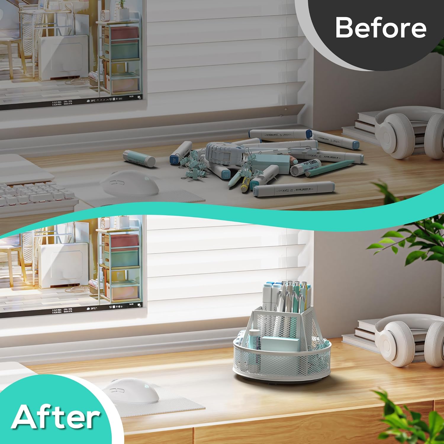 - Convenient Pen Holder for Desk: The built-in rotating pencil holder (also serves as a pen holder) allows for easy access to your writing instruments. No more searching through drawers or clutter for that perfect pen or pencil. It's a must-have desk accessory & workspace organizer for any desk