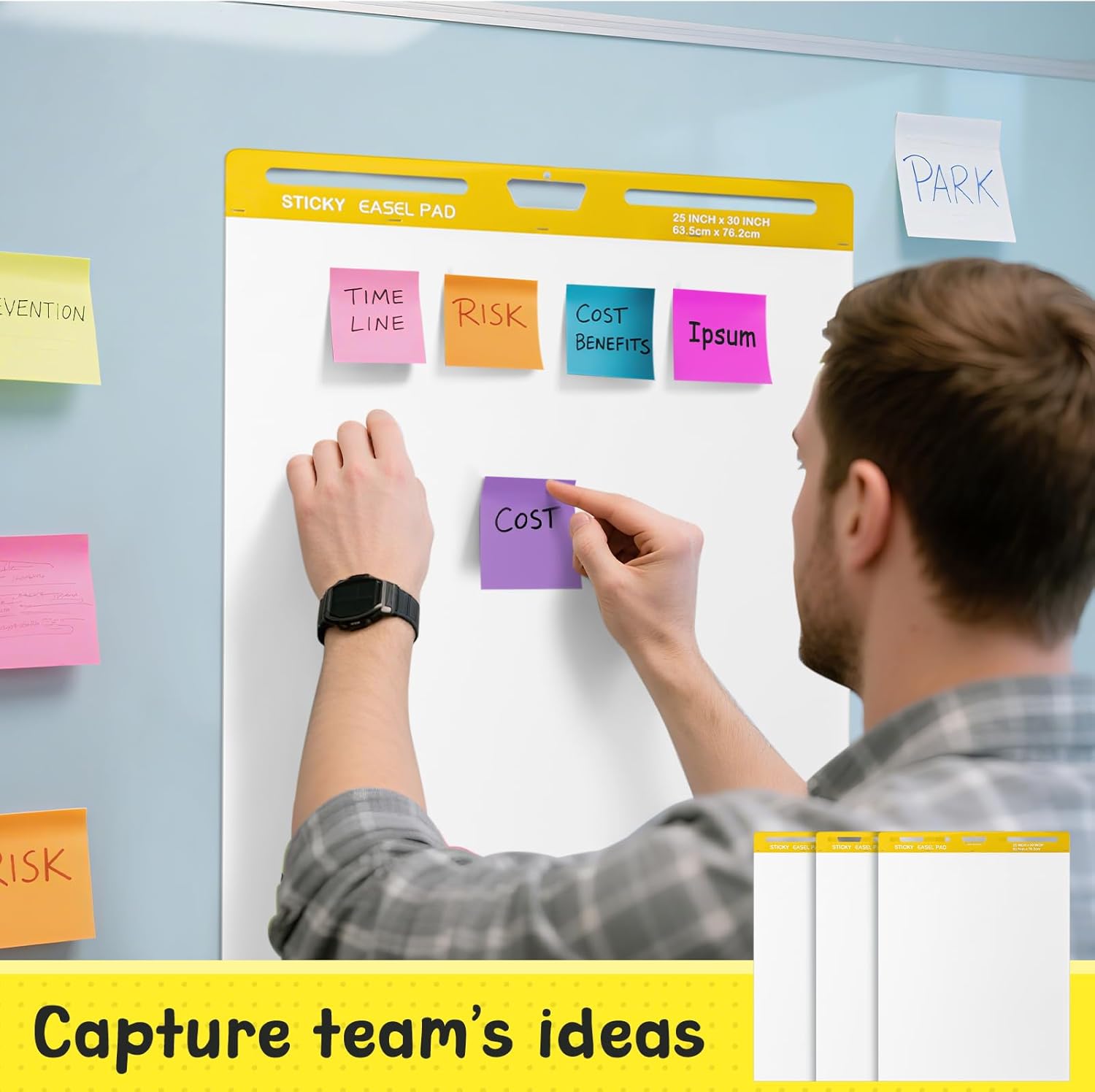 - Generous Quantity: the sticky easel pads package includes as many as 4 pads; Each pad comes with 20 sheets, meaning you're getting an abundant 600 sheets in total; These pads are ideal for businesses, educational institutes or professional environment requiring regular use of easel pads