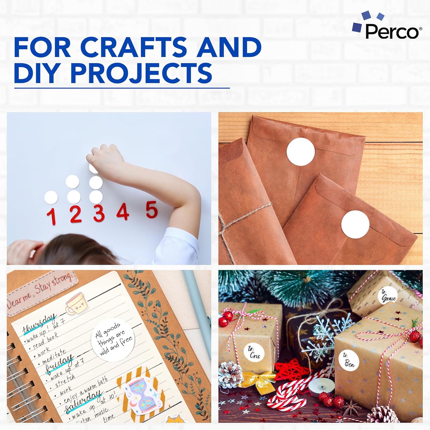 Perco White 2-Inch Perforated Circle Dot Sticker Labels — 10 Rolls, 5,000 Round Stickers — with Permanent Adhesive for Organizing, Color Coding, Bin Labeling, Packaging Alerts—Made in USA