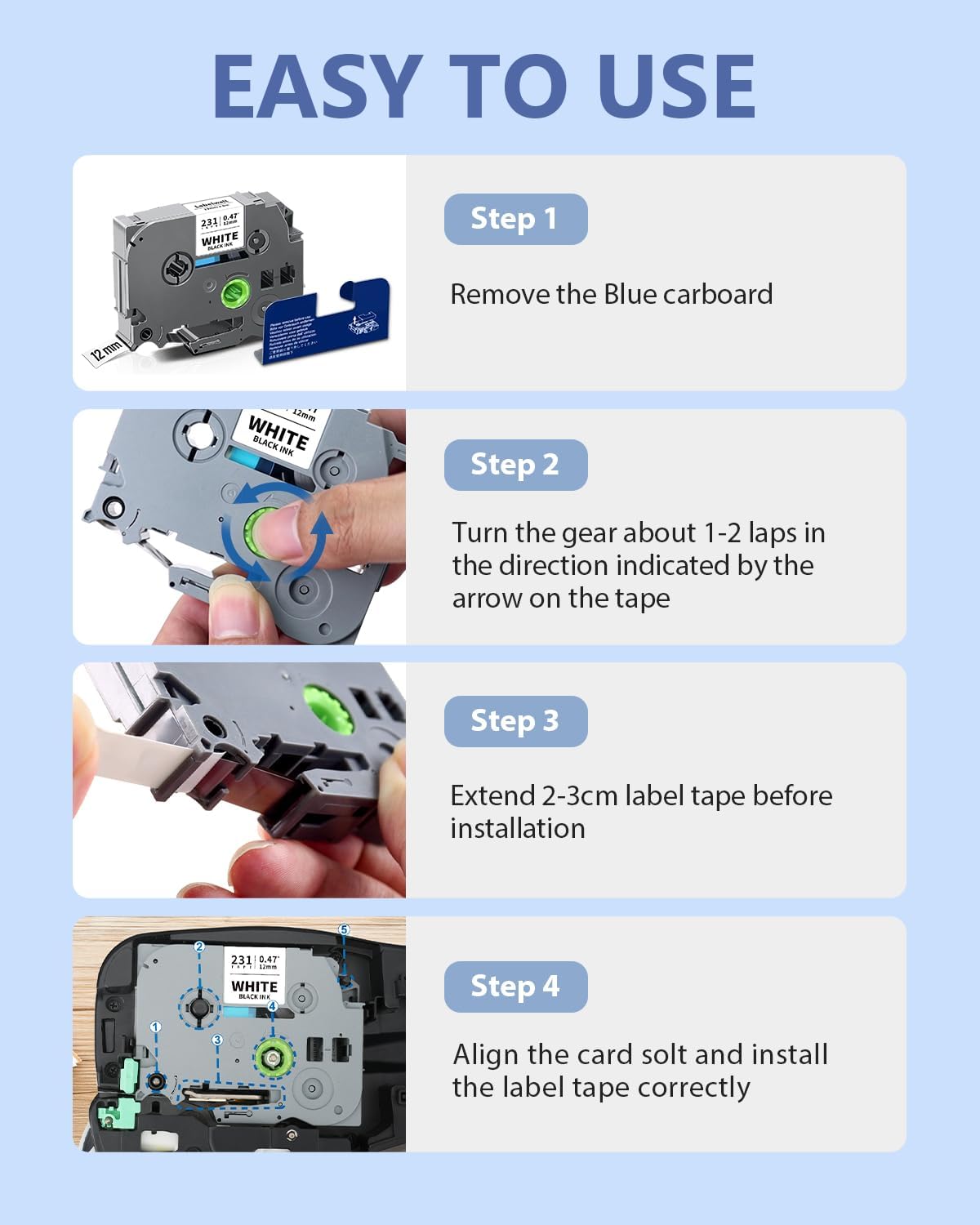 - Wide Application: These TZe-231 label tapes are widely used in home, school, office, factory, hospital and so on. Labelwell 12mm 0.47 Laminated White P Touch Label Tape could meet your outdoor and indoor needs