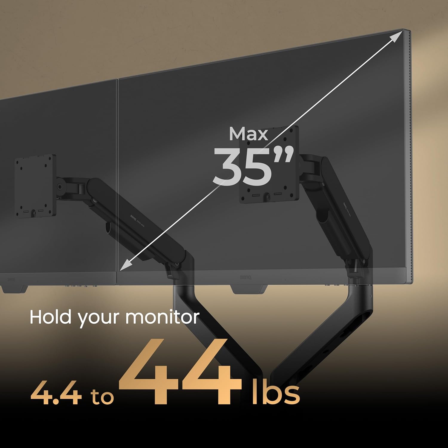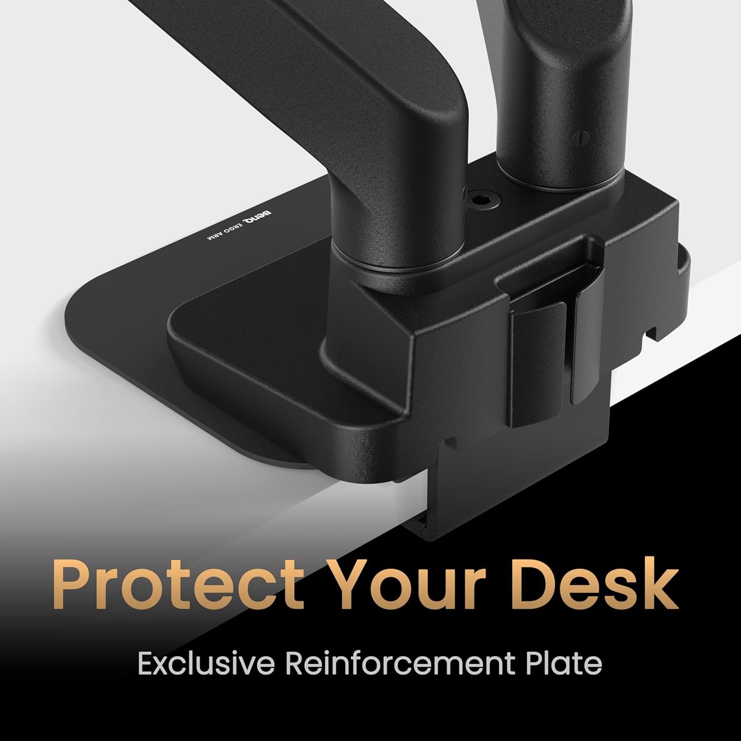 BenQ BDH01 Dual Monitor Arm -Gas Spring Monitor Stand for 2 Screens Up to 35'' & 44lbs, Heavy Duty, Quick Installation, No Sagging, Top Clamp and Grommet Base, Reinforcement Plate, VESA 75x75 &100x100