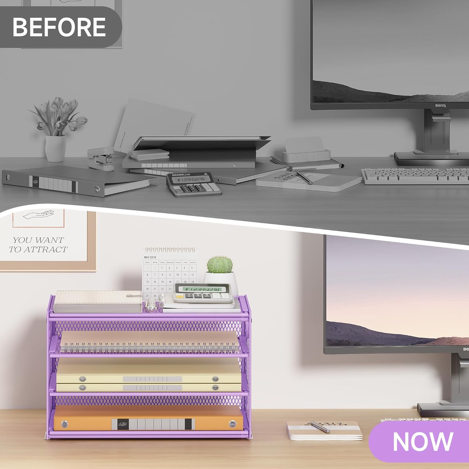- Paper Organizer Function and Usage: The mesh desktop file organizer can hold various items including paper, folders, books, bills, notebooks, etc. The open design enables quick identification and access to contents, helping to declutter and organize the desk