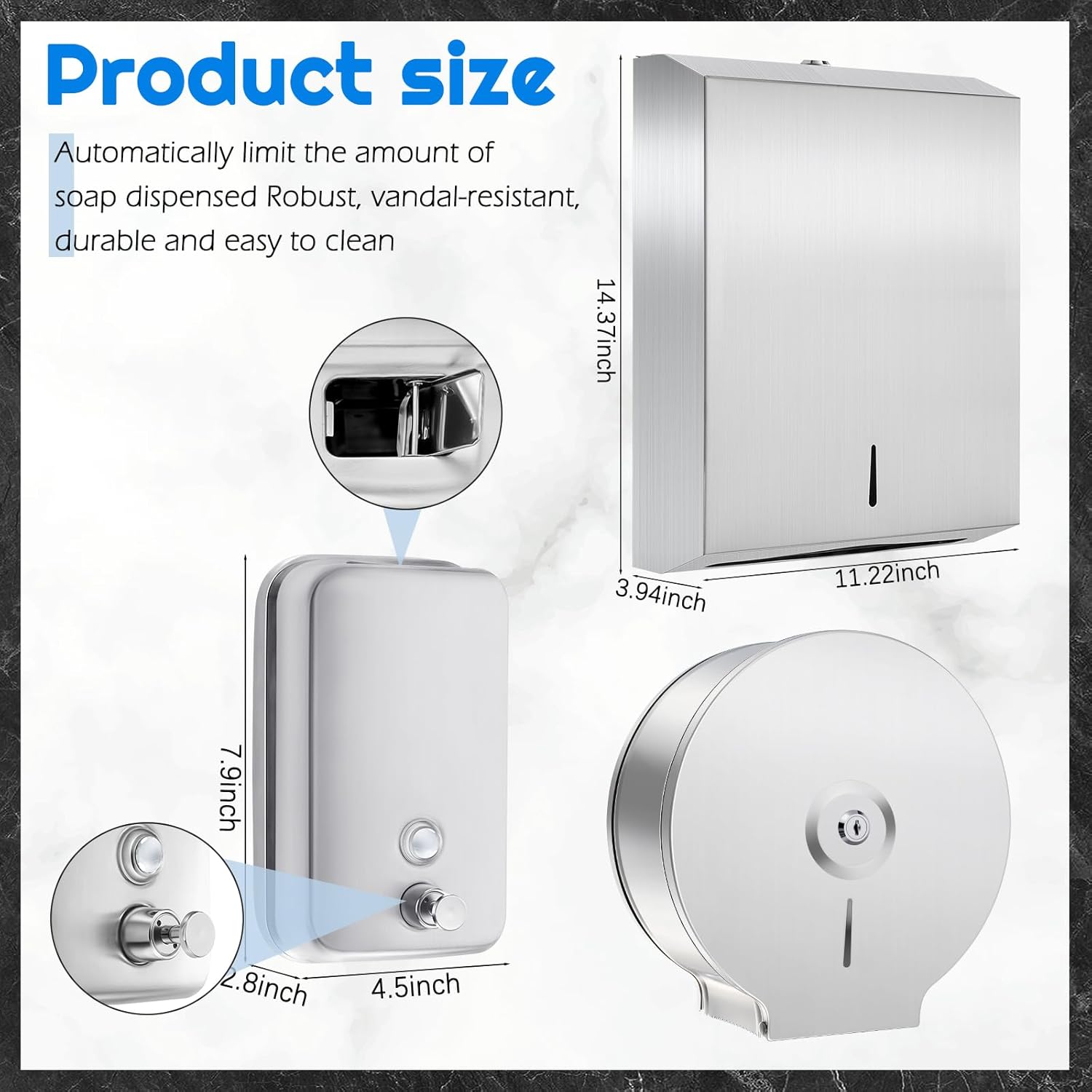 - Wide Range of Uses: the simplistic design and practical features make this set applicable in a variety of scenarios, from households to offices, restaurants, hotels, and other commercial settings; Wherever hygiene is a priority, our soap and paper dispenser set is your ultimate solution