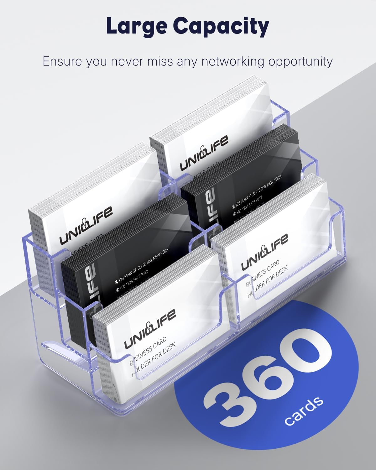 Uniclife 2 Pack Acrylic Business Card Holder for Desk 3 Tiers 6 Slots Clear Business Card Display Stand for Men & Women Desktop Business Card Organizer Card Stand for Office Home, 360 Card Capacity