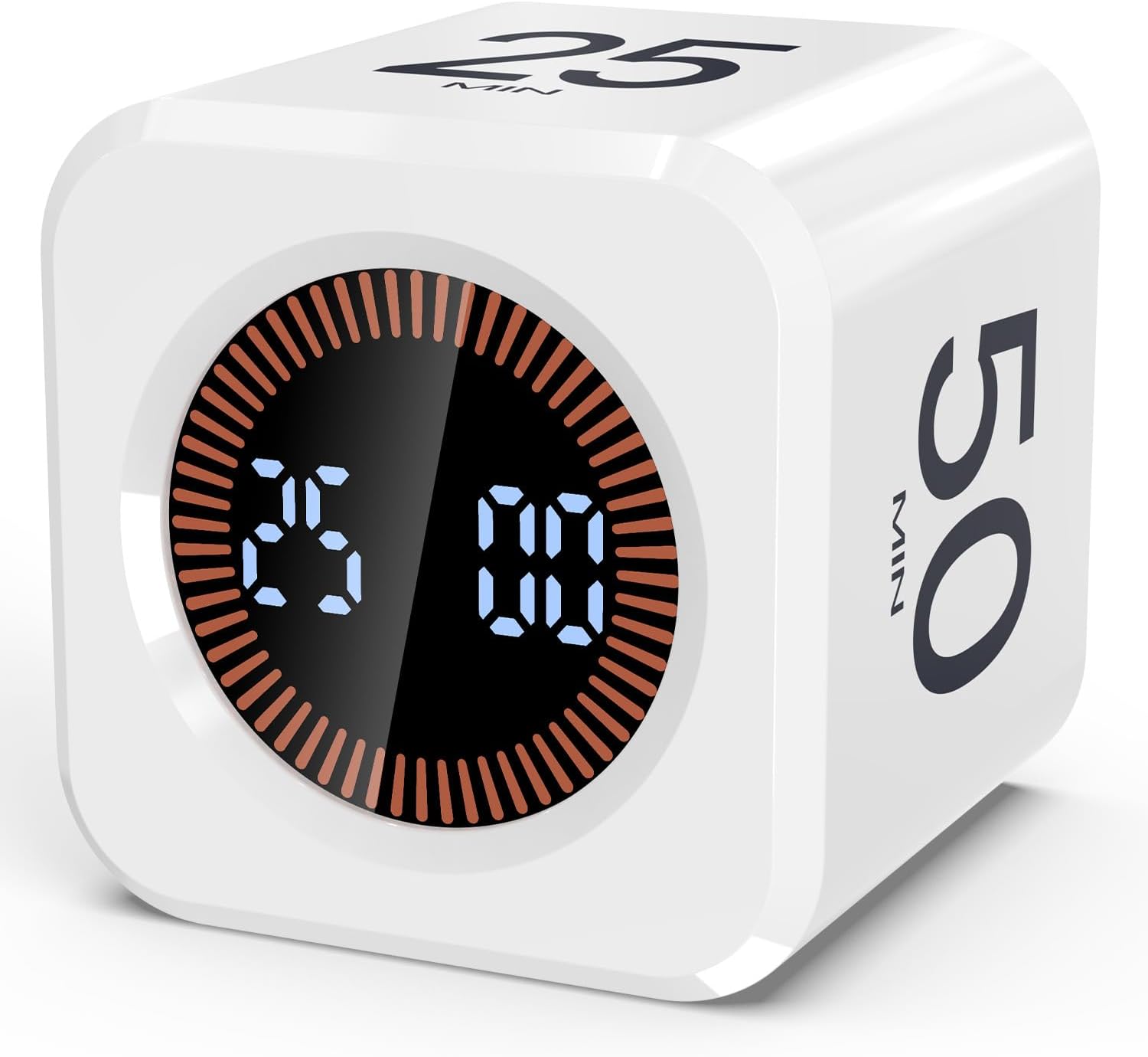 - Pomodoro Timer for Focus: Pomodoro timer cube supports the Pomodoro Technique—focus for 25 minutes, rest for 5! Perfect for helping kids improve concentration, especially those with ADHD or autism. More than just a timer, it's a powerful tool for building habits and staying on task. Besides, it is also suitable for office, work, meetings, study, reading, workout, and cooking, making it a versatile tool for different activities