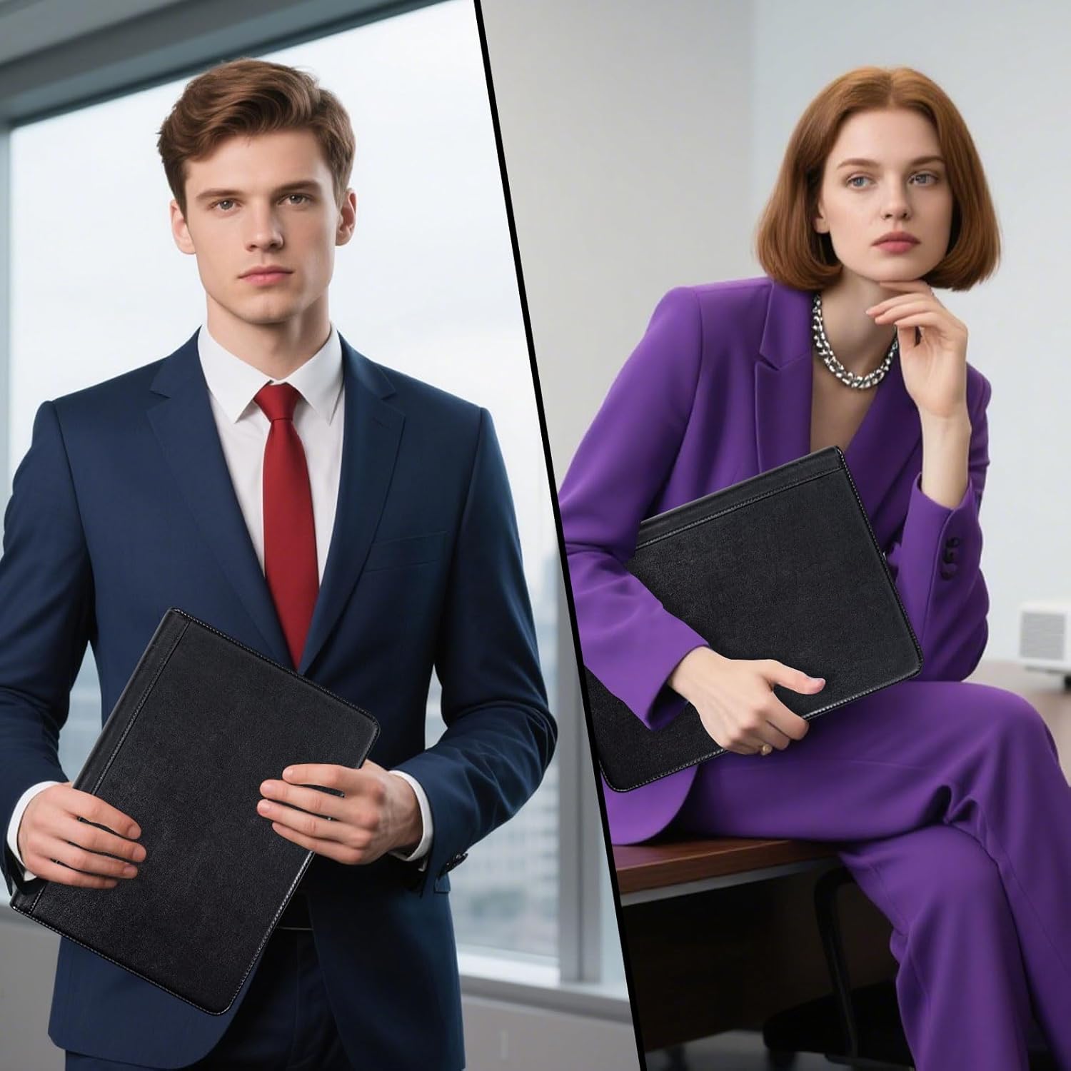 - 【Premium&Stylish-Leather Portfolio Binder】 This personalized portfolio organizer is handmade from leather, waterproof and durable while balancing elegance and fashion. Brown, vintage brown and black portfolio for men are simple and atmospheric. The padfolio for women with rose gold and deep blue print is elegant and exquisite. The Calfinder business portfolio is the perfect gift choice for lawyers, teachers, graduates, employees, and any other professionals.