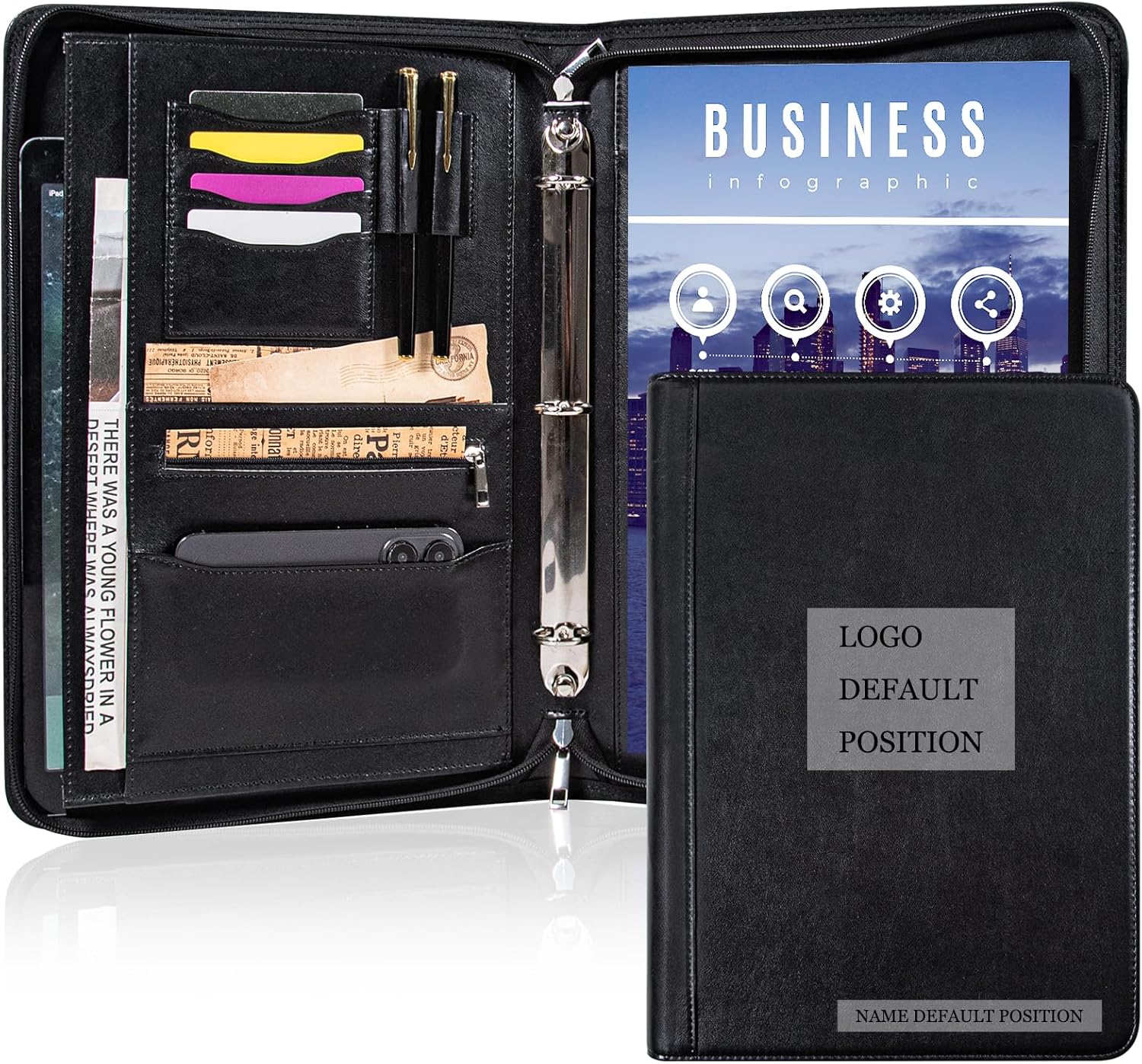 Calfinder Personalized Padfolios Portfolio Binder,3 Ring Leather Binder with Zipper,Professional Padfolios for Women&Men, Business Portfolio Organizer for Resume, Leather Folder for Ipad